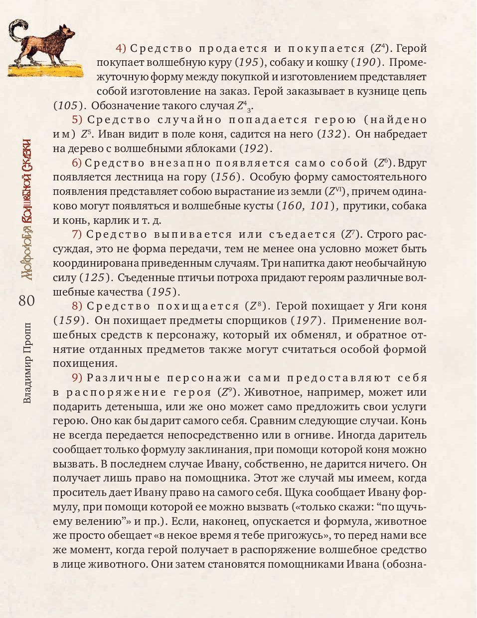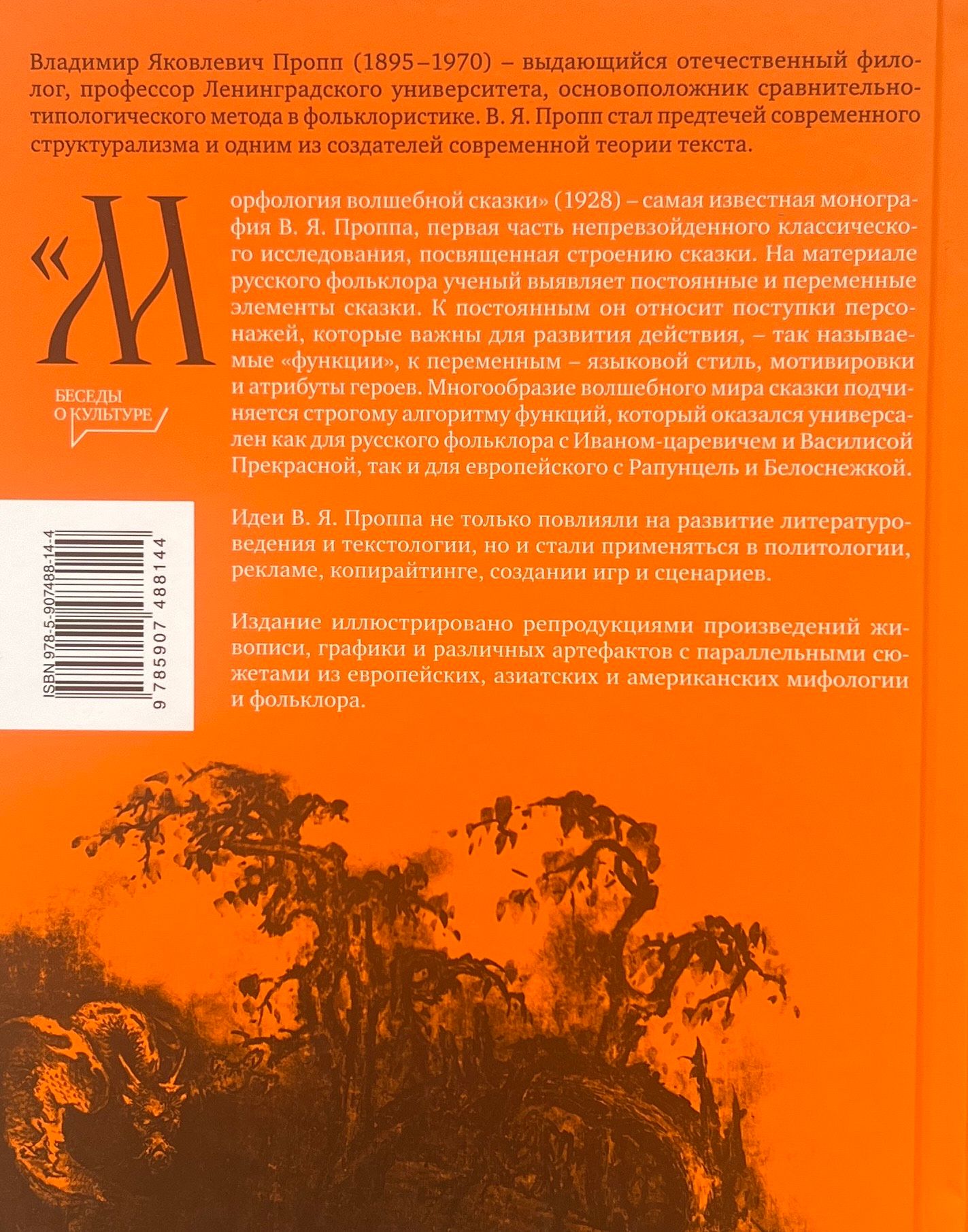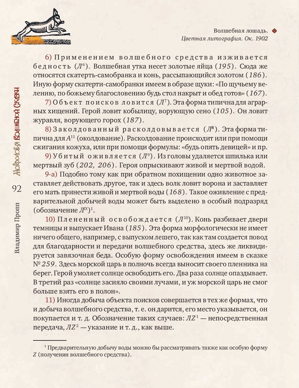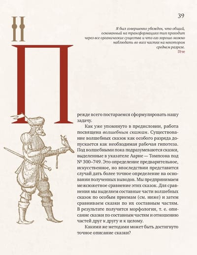 Владимир Яковлевич Пропп (1895-1970) - ученый-фольклорист, профессор Ленинградского университета, основоположник сравнительно-типологического метода в фольклористике. В. Я. Пропп стал предтечей современного структурализма и одним из создателей современной теории текста. «Морфология волшебной сказки» (1928) - самая известная монография В. Я. Проппа, первая часть непревзойденного классического исследования, посвященная строению сказки. На материале русского фольклора ученый выявляет постоянные и переменные элементы сказки. К постоянным он относит поступки персонажей, которые важны для развития действия, - так называемые «функции», к переменным - языковой стиль, мотивировки и атрибуты героев. Многообразие волшебного мира сказки подчиняется строгому алгоритму функций, который оказался универсален как для русского фольклора с Иваном-царевичем и Василисой Прекрасной, так и для европейского с Рапунцель и Белоснежкой.