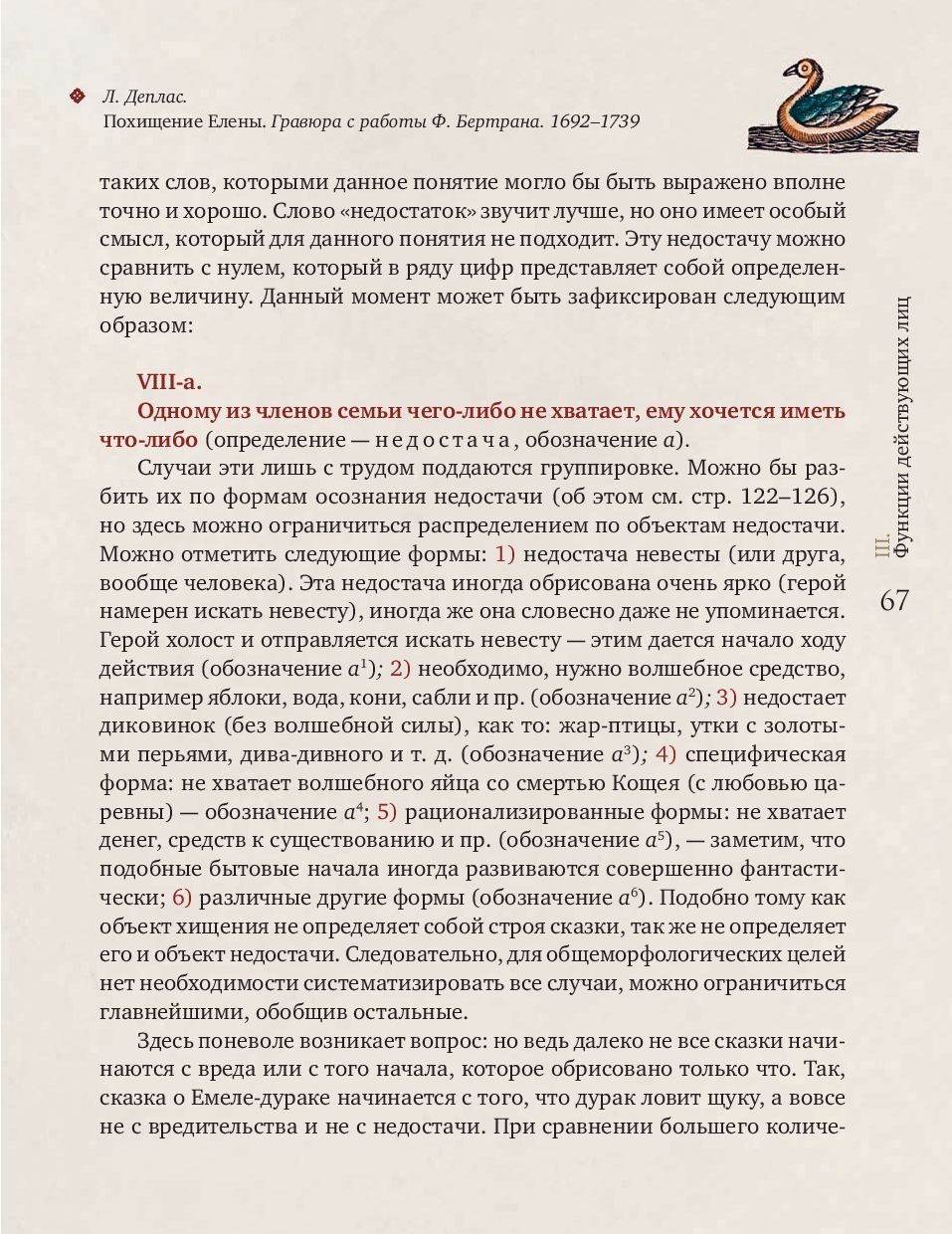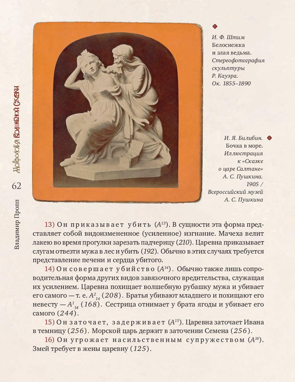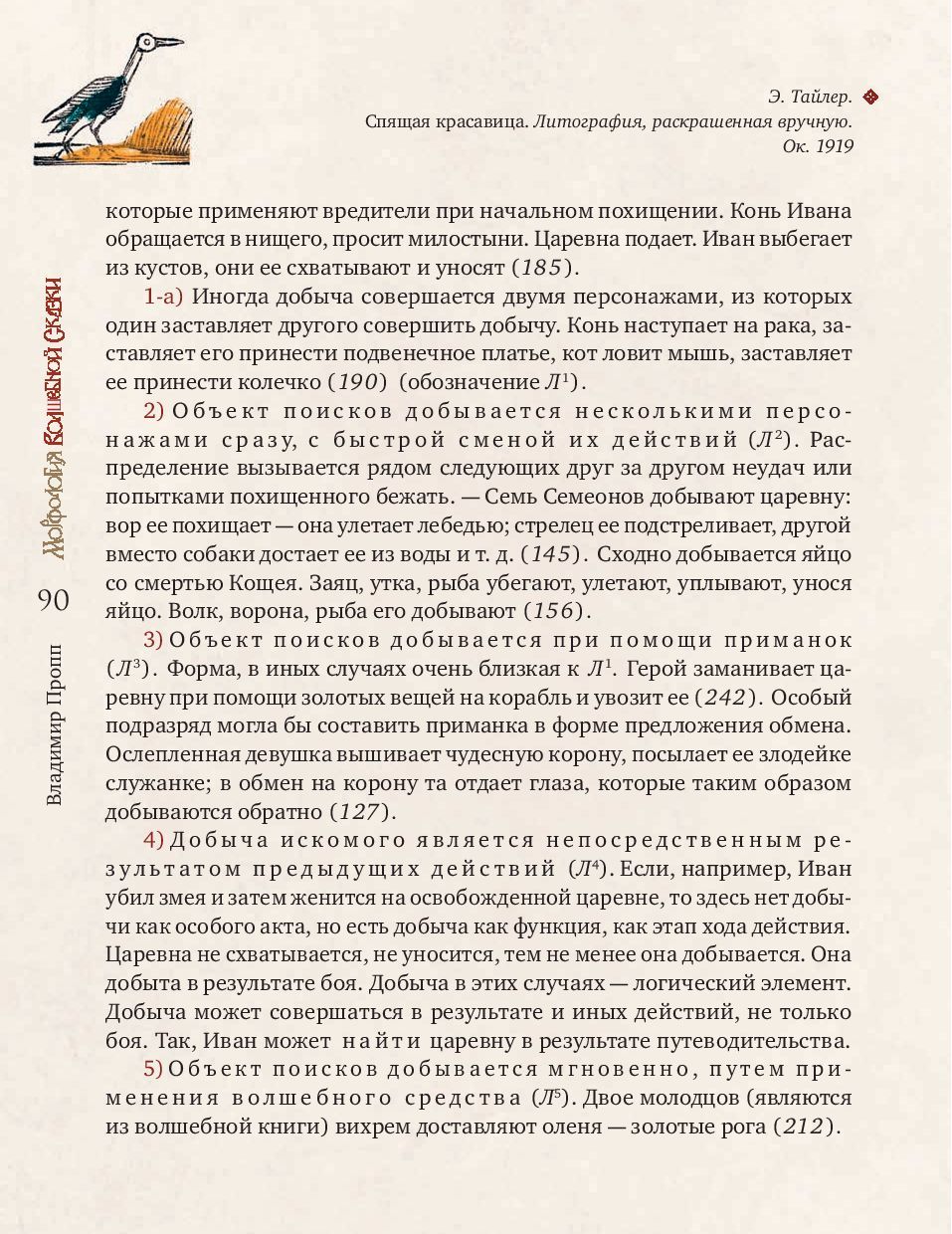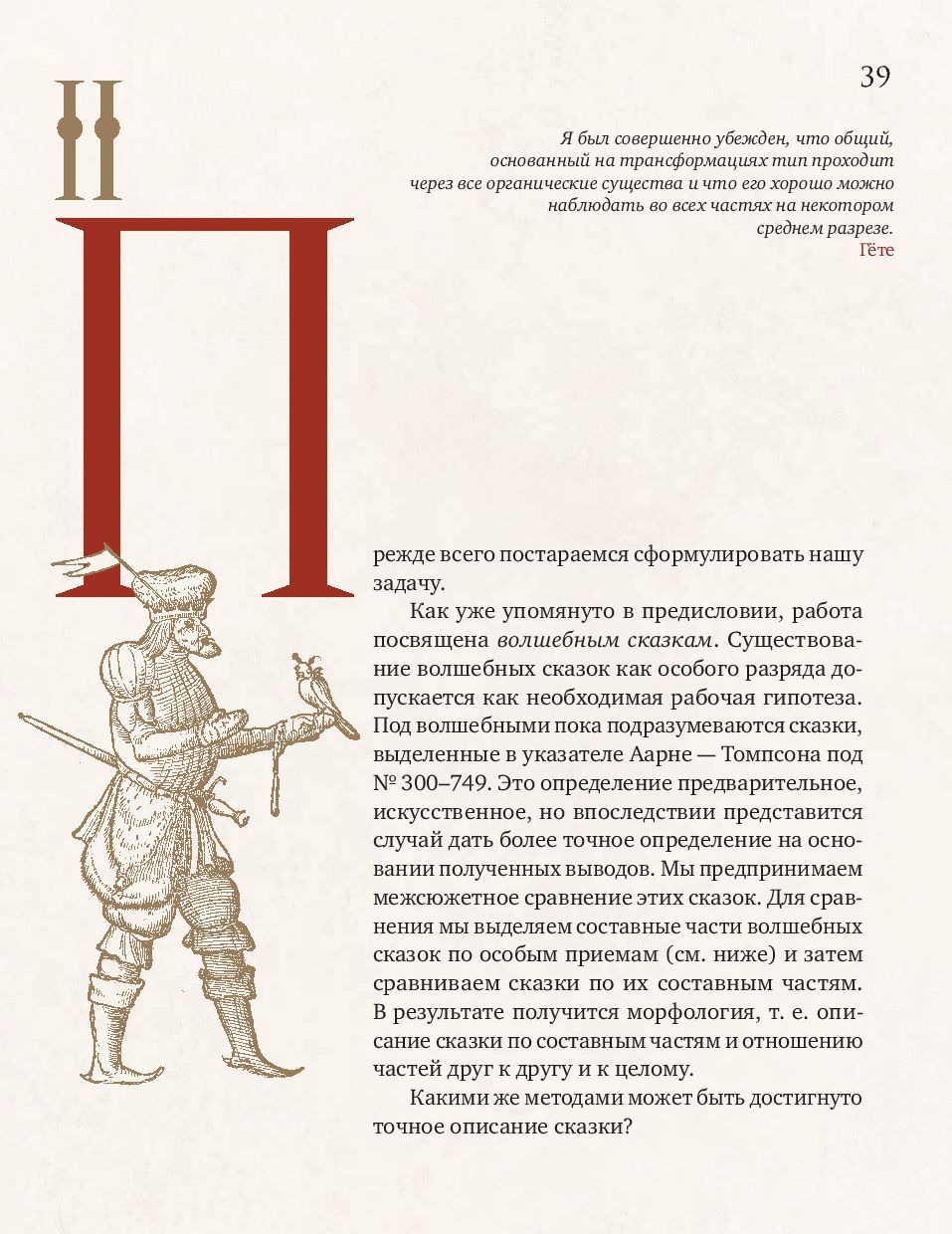 Владимир Яковлевич Пропп (1895-1970) - ученый-фольклорист, профессор Ленинградского университета, основоположник сравнительно-типологического метода в фольклористике. В. Я. Пропп стал предтечей современного структурализма и одним из создателей современной теории текста. «Морфология волшебной сказки» (1928) - самая известная монография В. Я. Проппа, первая часть непревзойденного классического исследования, посвященная строению сказки. На материале русского фольклора ученый выявляет постоянные и переменные элементы сказки. К постоянным он относит поступки персонажей, которые важны для развития действия, - так называемые «функции», к переменным - языковой стиль, мотивировки и атрибуты героев. Многообразие волшебного мира сказки подчиняется строгому алгоритму функций, который оказался универсален как для русского фольклора с Иваном-царевичем и Василисой Прекрасной, так и для европейского с Рапунцель и Белоснежкой.