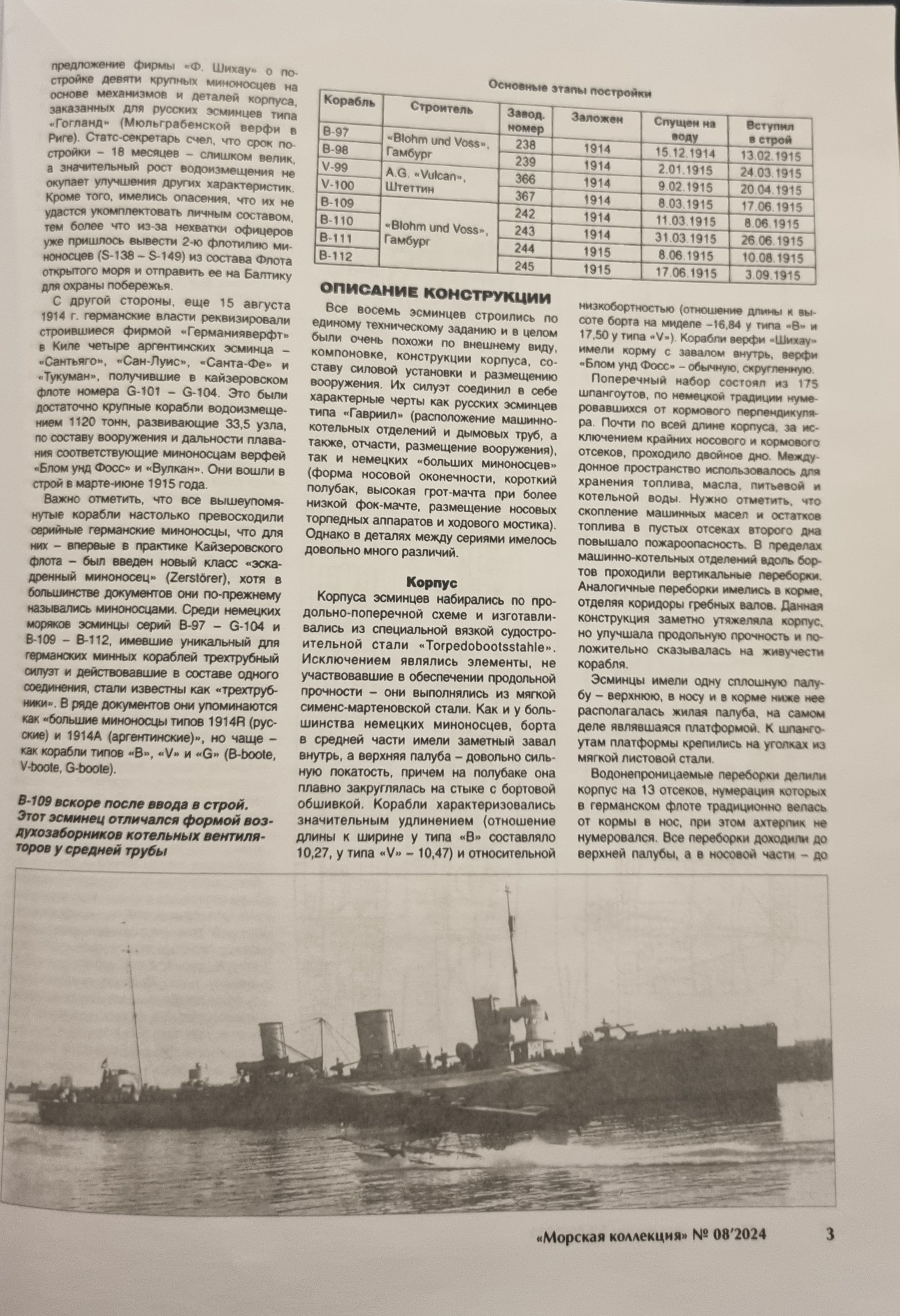 Морская коллекция 2024 №8. Кайзеровские «Новики». Эсминцы серий B-97 и V-99