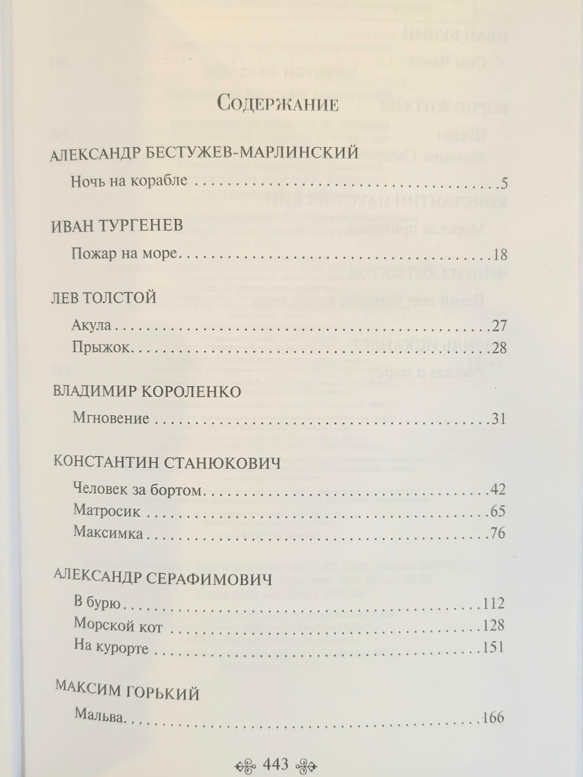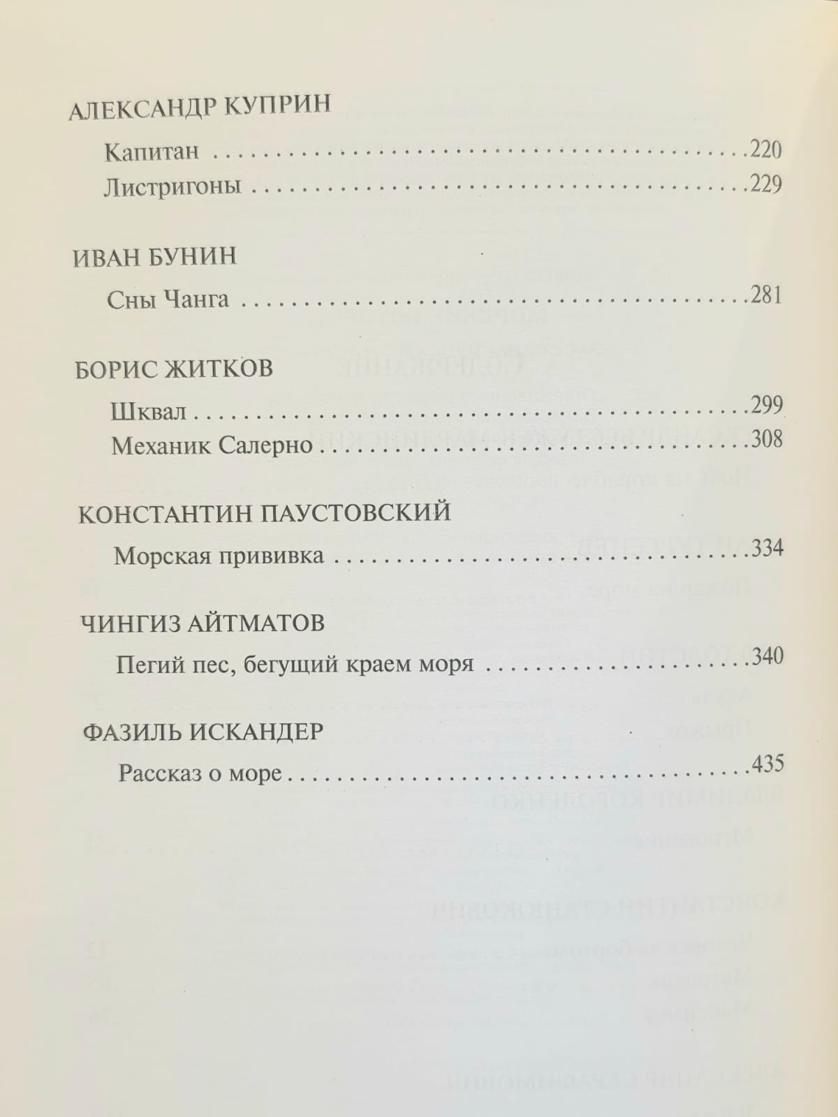 В сборнике представлены произведения Толстого, Короленко, Станюковича, Серафимовича, Куприна, Бунина, Житкова, Паустовского, Айтматова и других мастеров русской прозы, которые открывают перед читателем мир моря — суровый, чарующий, бесконечно живой.