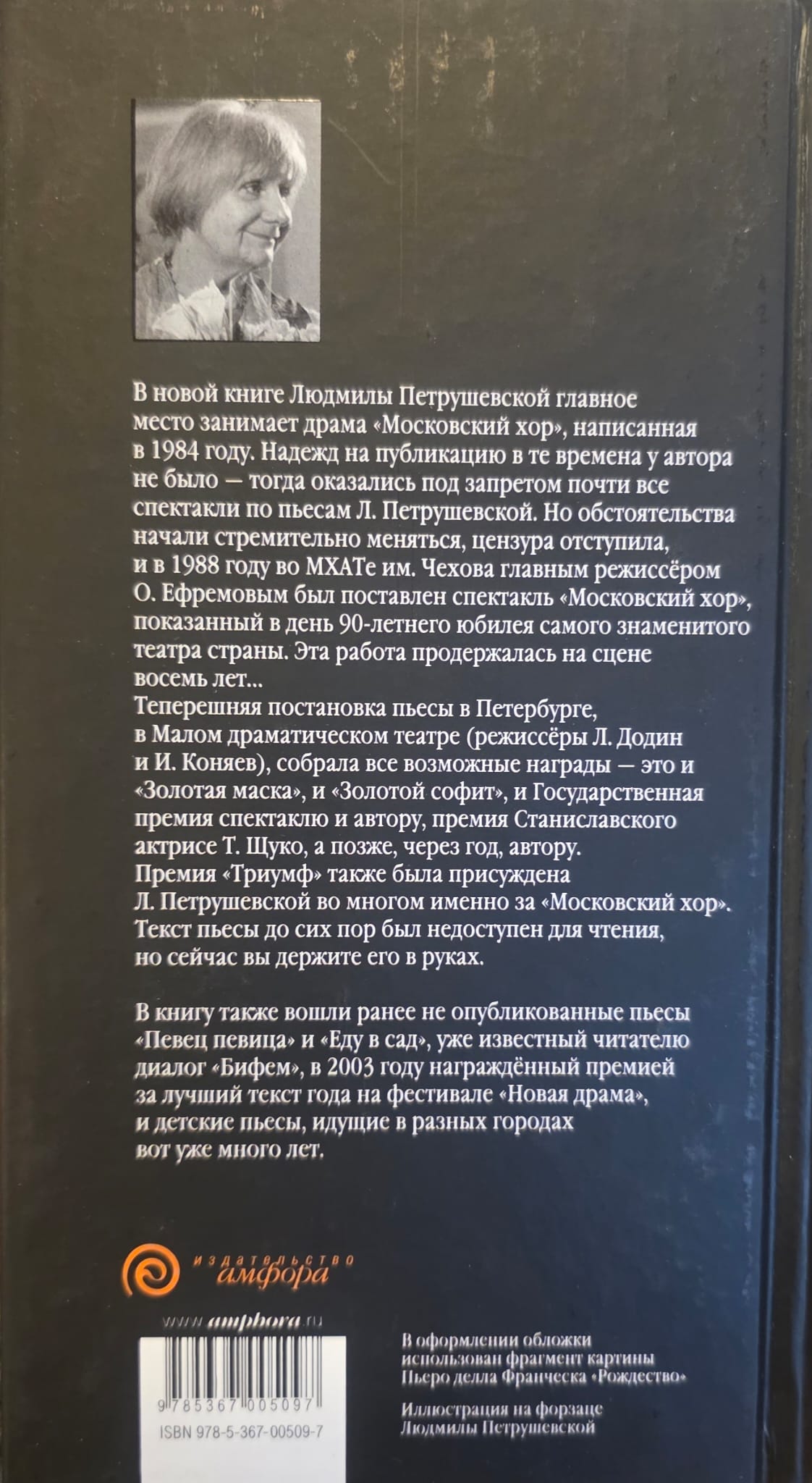 В книгу вошли пьесы Людмилы Петрушевской, часть из которых неизвестна читающей и театральной публике. Это, прежде всего, знаменитый «Московский хор», получивший множество премий (после постановки в петербургском Малом драматическом театре) и публикующийся впервые.