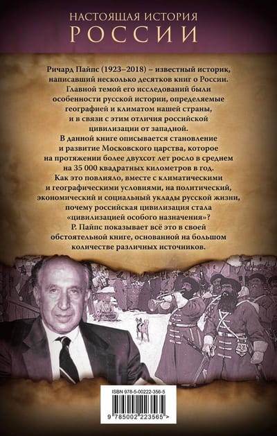 В данной книге описывается становление и развитие Московского царства, которое на протяжении более двухсот лет росло в среднем на 35 000 квадратных километров в год. Как это повлияло, вместе с климатическими и географическими условиями, на политический, экономический и социальный уклады русской жизни, почему российская цивилизация стала «цивилизацией особого назначения»? Р. Пайпс показывает всё это в своей обстоятельной книге, основанной на большем количестве различных источников.
