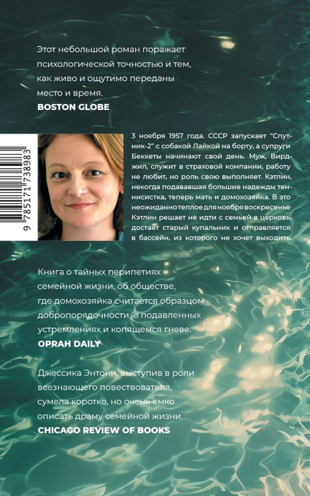 Ноябрьское воскресенье 1957 года. СССР запускает «Спутник-2» с собакой Лайкой на борту, и весь мир следит за новостями. Супруги Беккеты из американского Ньюарка тоже в курсе последних событий. Но именно в этот день их с виду обычная жизнь незаметно начинает трещать по швам. Муж, Вирджил, идет с сыновьям в церковь, потом отправляется играть в гольф с коллегами. Странности начинаются, когда Кэтлин, некогда подававшая большие надежды теннисистка, а теперь мать и домохозяйка, отказывается идти в церковь. Она достает старый купальник и отправляется в бассейн, из которого до самого вечера отказывается выходить.