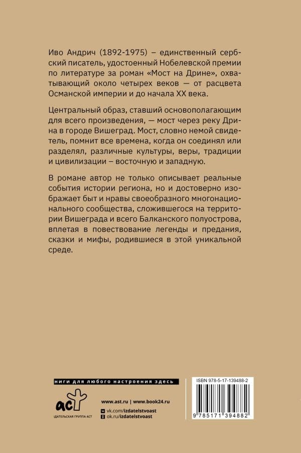 Иво Андрич (1892–1975) — единственный сербский писатель, удостоенный Нобелевской премии по литературе за роман «Мост на Дрине», охватывающий около четырех веков — от расцвета Османской империи и до начала XX века.