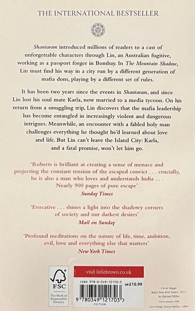 Shantaram introduced millions of readers to a cast of unforgettable characters through Lin, an Australian fugitive, working as a passport forger for a branch of the Bombay mafia. In The Mountain Shadow, the long awaited sequel, Lin must find his way in a Bombay run by a different generation of mafia dons, playing by a different set of rules.