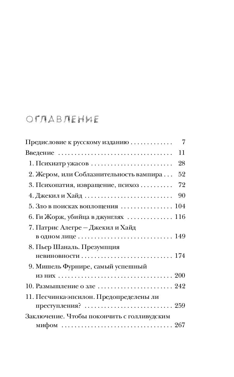 Даниэль Загури - ведущий судебный психиатр Франции, заведующий отделением крупнейшего Психиатрического центра в Париже и старший эксперт главного французского Апелляционного суда. Что заставляет некоторых совершать ужасные преступления вновь и вновь? На примере самых громких дел из своей практики, потрясших Францию, Даниэль Загури раскрывает тайны психологии убийц и насильников. Он показывает, что у этих людей общего, а также, что отличает серийных убийц от виновных, например, в массовых убийствах. Загури также разоблачает голливудские мифы о серийных убийцах. Автор рассказывает шокирующие подробности преступлений и особенности патологического мышления, которые он узнал во время своих встреч с маньяками.
