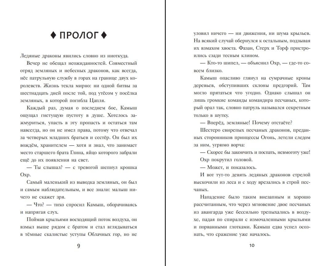 Что делать, если родное племя, о котором ты всю жизнь мечтал, внушает тебе ужас, а его таинственный дом — отвращение? Как остановить новый виток войны, спасти соплеменников и спастись самому — и в то же время не предать драконят судьбы, с которыми ты должен исполнить пророчество… или судьба всё сделает сама? Да и само пророчество — откуда оно вообще взялось? Такие трудные вопросы встают перед Звездокрылом в новой части «Драконьей саги», где ночному дракончику предстоит с помощью друзей не только избежать множества опасностей, но и победить свой собственный страх.