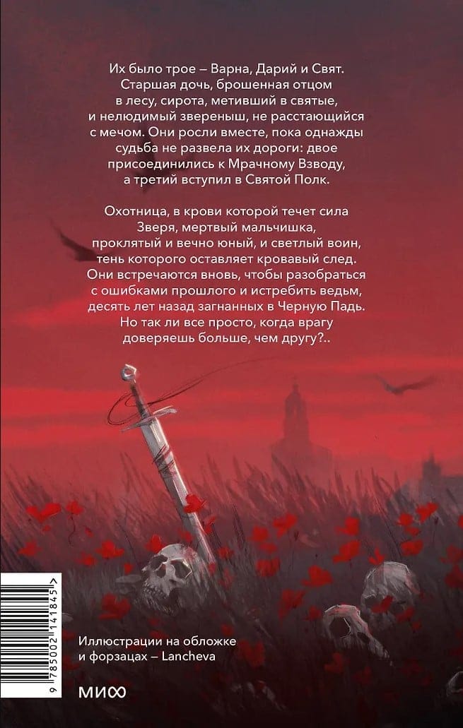 Их было трое - Варна, Дарий и Свят.Старшая дочь, брошенная отцом в лесу, сирота, метивший в святые, и нелюдимый звереныш, не расстающийся с мечом. Они росли вместе, пока однажды судьба не развела их дороги: двое присоединились к Мрачному Взводу, а третий вступил в Святой Полк.Охотница, в крови которой течет сила Зверя, мертвый мальчишка, проклятый и вечно юный, и светлый воин, тень которого оставляет кровавый след. Они встречаются вновь, чтобы разобраться с ошибками прошлого и истребить ведьм, десять лет назад загнанных в Черную Падь. Но так ли все просто, когда врагу доверяешь больше, чем другу?..