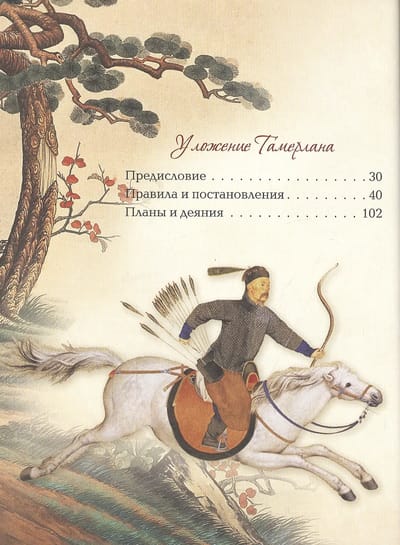 Тамерлан (1336–1405) — величайший азиатский завоеватель, основатель империи Тимуридов, победитель Золотой Орды. В своем знаменитом «Уложении» Тамерлан описал правила, которыми он руководствовался в управлении государством, армией и народом.
