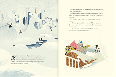 В Муми-доле зима. Море спит подо льдом, маленькие букашки спят под землей, муми-тролли спят под одеялами и видят долгие зимние сны. Они залегли в спячку в октябре и намереваются проспать до самой весны. Но Хемуль не таков. Он твёрдо решил встретить Новый год. И он не намерен встречать его в одиночку. Нужно срочно разбудить Муми-тролля.   Эта снежная история основана на оригинальном сюжете Туве Янссон и адаптирована для маленьких читателей. И, конечно, на каждом развороте можно встретить Крошку Мю, Снусмумрика, Муми-тролля и Фрекен Снорк.