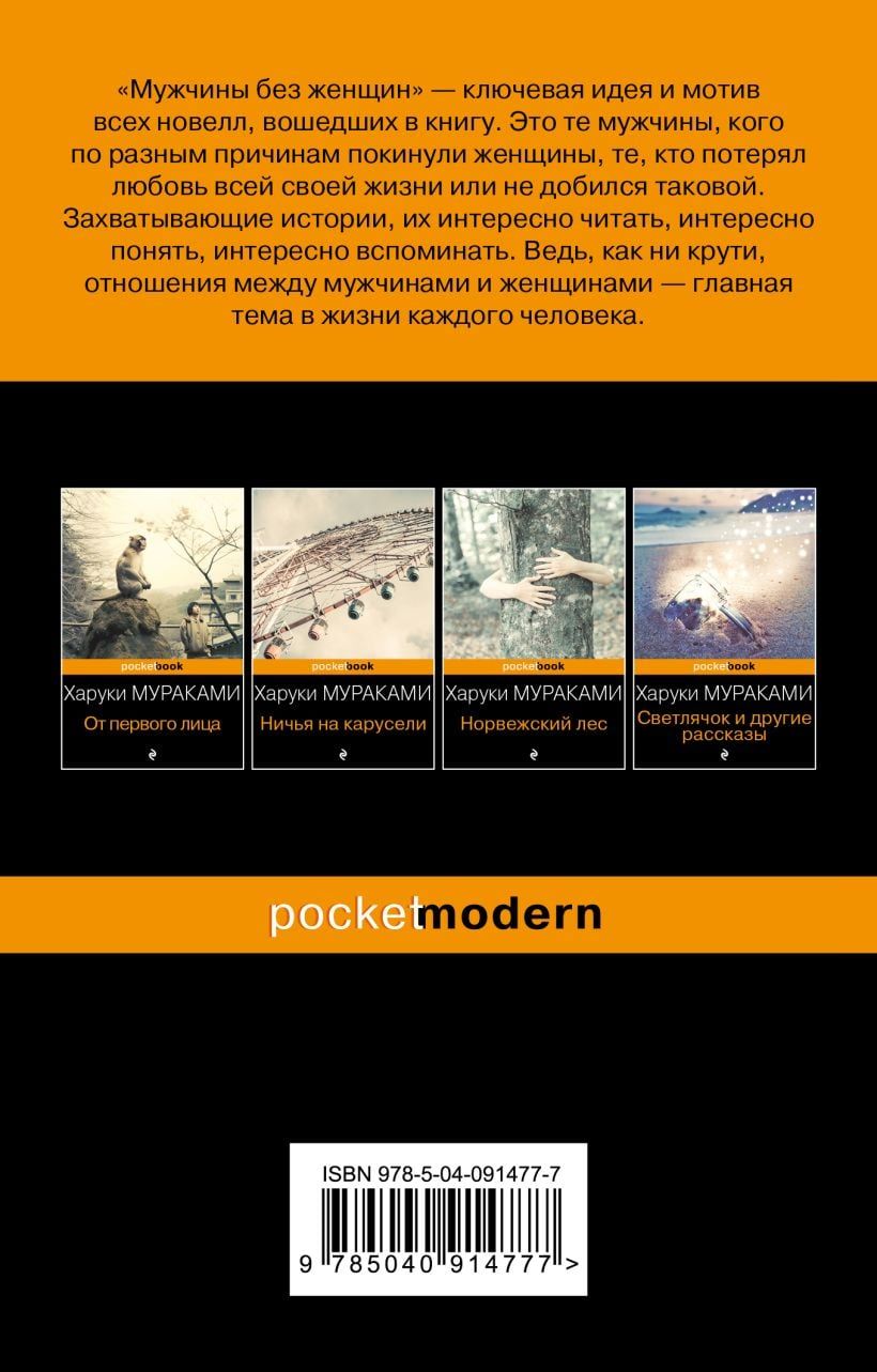 «Мужчины без женщин» — сборник новелл и эссе о людях разного возраста, социального положения, статуса, но объединенных одним общим мотивом: все они о мужчинах, оставшихся без женщин. Кого-то из них разлучила измена возлюбленной, кого-то — смерть любимой, кто-то остался один волею случая, а для кого-то это осознанный выбор. Легендарный мастер слова раскрывает непростые отношения между мужчинами и женщинами, которые тысячелетиями волнуют умы ученых, философов и писателей. Читателя, как всегда, ждет откровенный разговор о любви, о семье, о взаимоотношениях полов и об одиночестве.