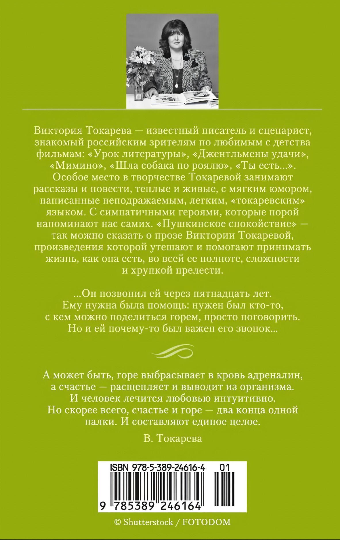 Виктория Токарева — известный писатель и сценарист, знакомый российским зрителям по любимым с детства фильмам: «Урок литературы», «Джентльмены удачи», «Мимино», «Шла собака по роялю», «Ты есть...». Особое место в творчестве Токаревой занимают рассказы и повести, теплые и живые, с мягким юмором, написанные неподражаемым, легким, «токаревским» языком. С симпатичными героями, которые порой напоминают нас самих. «Пушкинское спокойствие» — так можно сказать о прозе Виктории Токаревой, произведения которой утешают и помогают принимать жизнь, как она есть, во всей ее полноте, сложности и хрупкой прелести. ...Он позвонил ей через пятнадцать лет. Ему нужна была помощь: нужен был кто-то, с кем можно поделиться горем, просто поговорить. Но и ей почему-то был важен его звонок… В настоящее издание вошли повести и рассказы 2000-х годов.