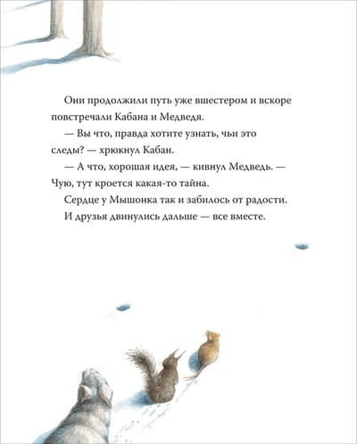Мышонок и Кротик — лучшие друзья. Жаль только, они давно не виделись: с тех самых пор, как выпал снег. Однажды Мышонок увидел в небе падающую звездочку, а, как известно, когда падает звездочка, нужно загадать желание. Мышонок очень хотел вновь поскорее встретиться с другом, а заодно решил отыскать звездочку по таинственным следам на снегу… Эту трогательную сказку о настоящей дружбе написала и проиллюстрировала японская художница Юми Симокавара.