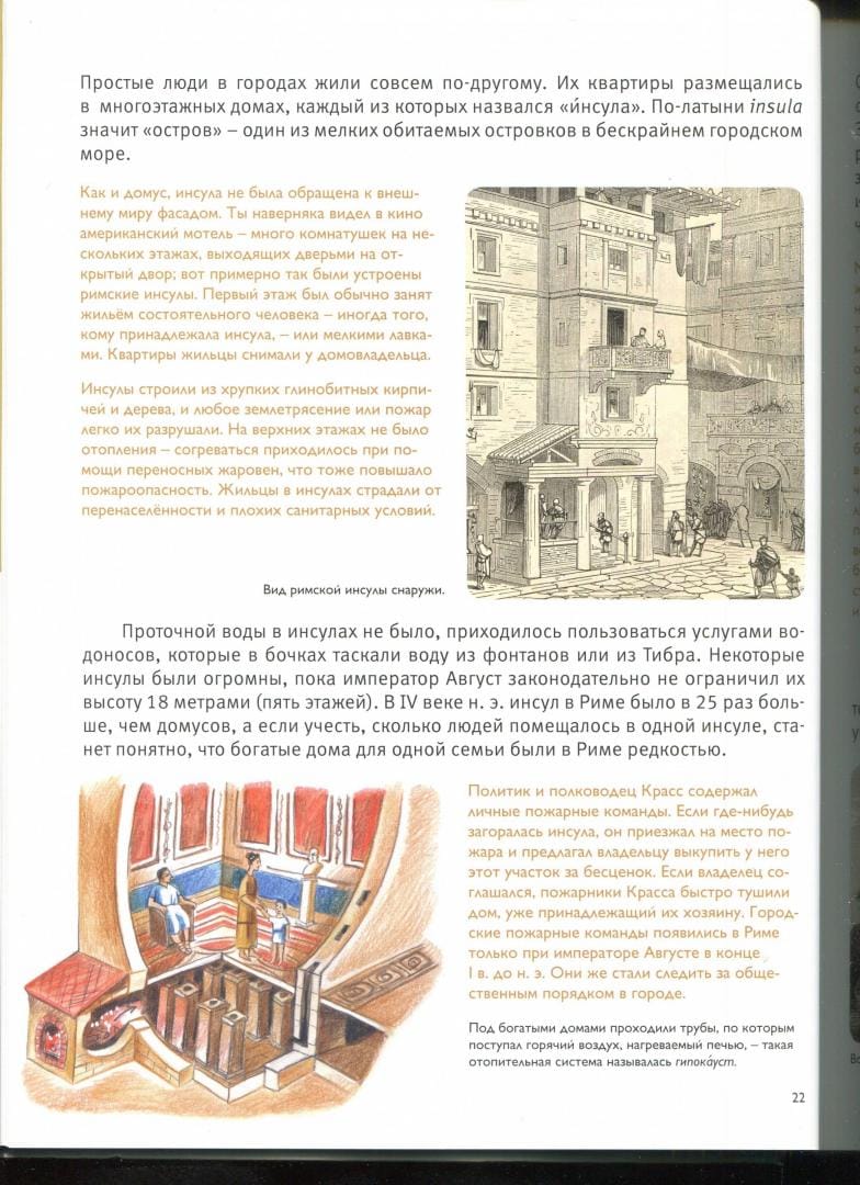 Древний Рим – колыбель европейской цивилизации. Узнать, чем мы обязаны римлянам от законов до водопровода, от рекламных объявлений до крылатых выражений, от обогреваемых полов до выборов должностных лиц, читатели смогут в уникальной детской энциклопедии. Пройдите улицами Вечного Города, побывайте на форуме, в термах и Колизее, пообедайте в триклинии богатого дома и в уличной таверне, вместе с римскими легионерами пройдите от Дуная до Парфии. Вся история Древнего Рима от царей-основателей до варварских нашествий под одной обложкой.