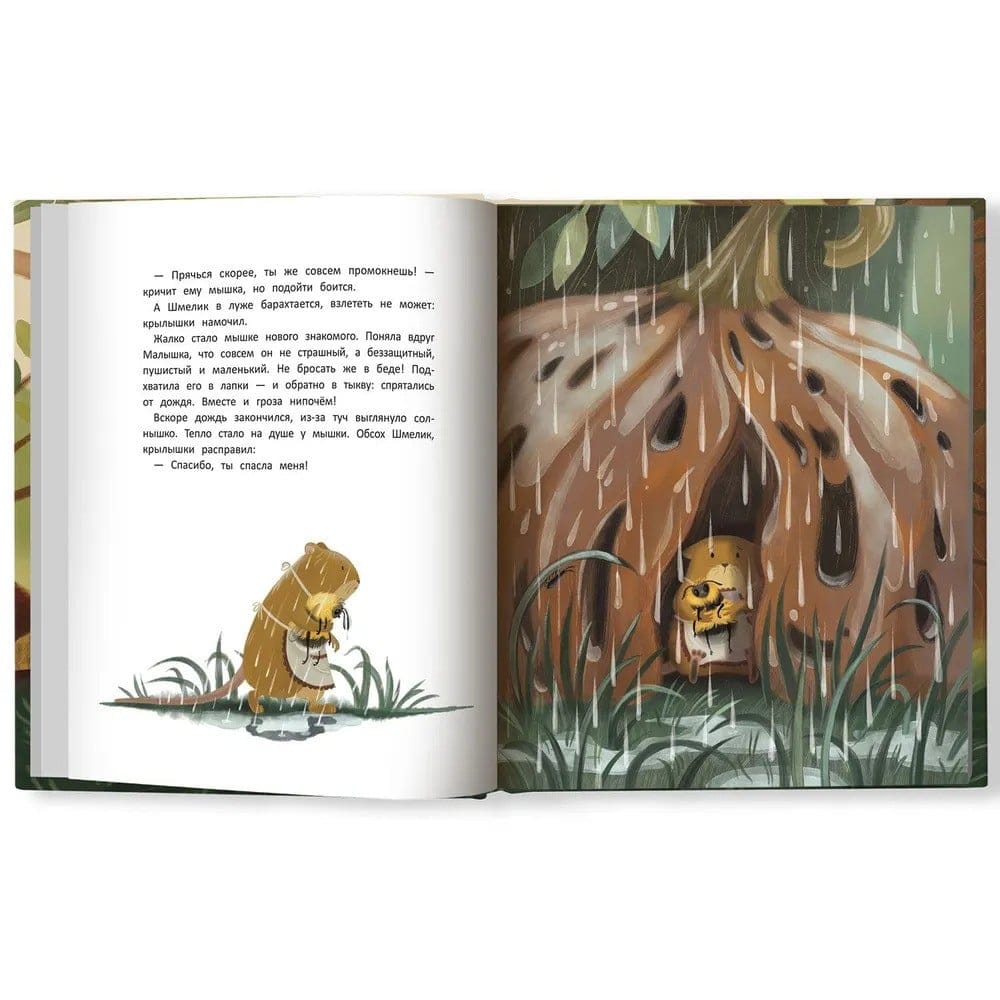 Маленькая трудолюбивая мышка живёт под горой, выращивает урожай и собирает ягоды. Однажды она встречает большого шмеля и пугается его. Но вскоре мышка понимает, что первое впечатление бывает обманчивым, а за грозной внешностью может скрываться доброе, отзывчивое сердце.