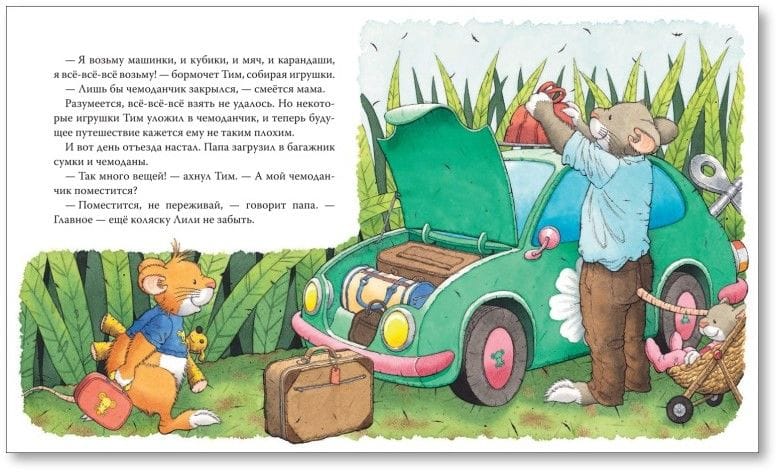 Серия книг про смешного и обаятельного мышонка Тима поможет малышам понимать, признавать и называть свои чувства, научиться общаться со сверстниками и справляться с трудными ситуациями. Родители мышонка Тима планируют поехать в отпуск. Вот только Тим против!  Ехать долго и скучно. Другая еда, другая кроватка! Придется расстаться с друзьями на целых две недели! Да еще и игрушки оставить дома – просто немыслимо! Но Тим еще не знает, что семейная поездка будет полна ярких впечатлений и новых знакомств.