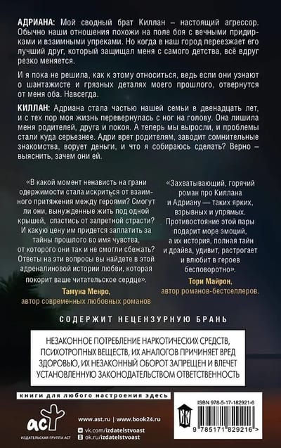 Киллан: Адриана стала частью нашей семьи в двенадцать лет, и с тех пор моя жизнь перевернулась с ног на голову. Она лишила меня родителей, друга и покоя. А теперь мы выросли, и проблемы стали куда серьезнее. Адри врет родителям, заводит сомнительные знакомства, ворует деньги, и что я собираюсь сделать? Верно – выяснить, зачем они ей.