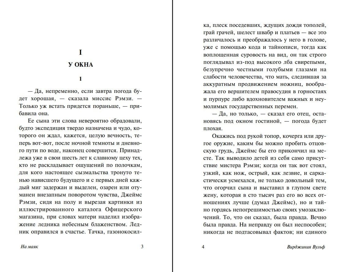Изысканный роман, в котором смешиваются и переплетаются времена действия, а лето, проведенное состоятельным семейством Рэмзи на острове Скай оказывается своеобразной британской «хроникой утраченного времени», — хрупкого, почти идиллического времени, обреченному на скорое разрушение Первой мировой войной. Вырастут дети, — кто-то уцелеет и повзрослеет, кто-то сложит голову на полях сражений. Забудутся мелкие неудачи и обиды. Будет заброшен старый дом, зарастет сад. Но воплотится ли в жизнь хоть для кого-то из детей Рэмзи мечта о поездке на далекий маяк?..