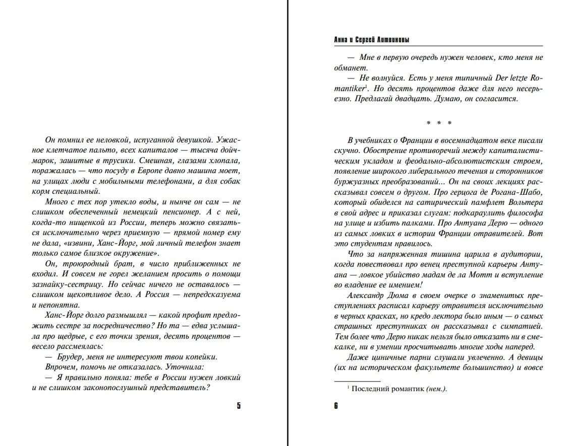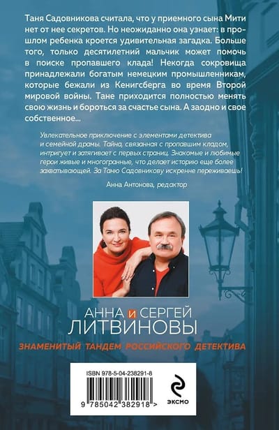Закрученная интрига, понятные и близкие читателю персонажи, современные проблемы — вот секрет успеха хорошего детектива за авторством Литвиновых. Следствие вновь ведут хорошо известные читателям по романам и телесериалам герои — авантюристка Татьяна Садовникова и ее отчим, отставной полковник внешней разведки Валерий Ходасевич.