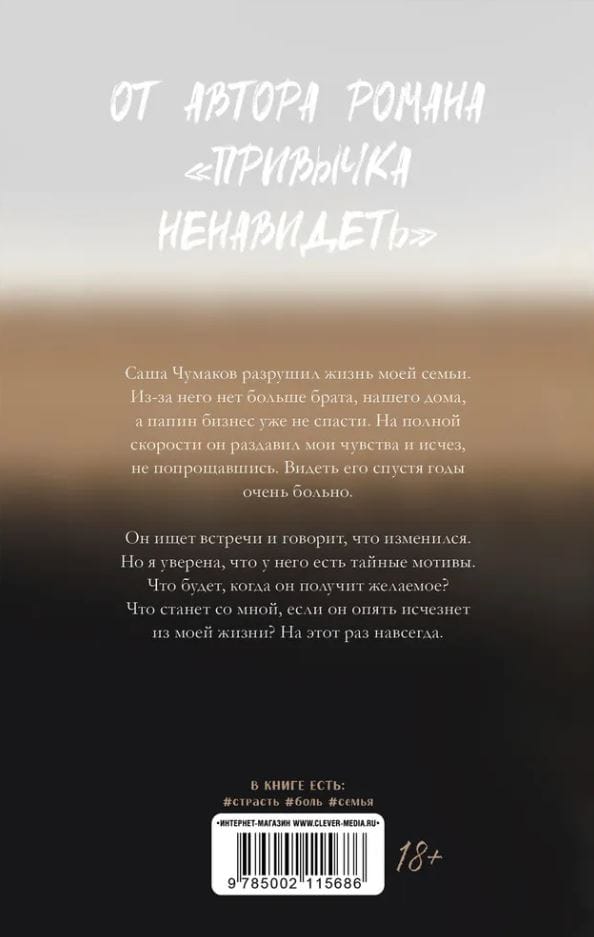 Саша Чумаков разрушил жизнь моей семьи. Из-за него нет больше брата, нашего дома, а папин бизнес уже не спасти. На полной скорости он раздавил мои чувства и исчез, не попрощавшись. Видеть его спустя годы очень больно. Он ищет встречи и говорит, что изменился. Но я уверена, что у него есть тайные мотивы. Что будет, когда он получит желаемое? Что станет со мной, если он опять исчезнет из моей жизни? На этот раз навсегда.