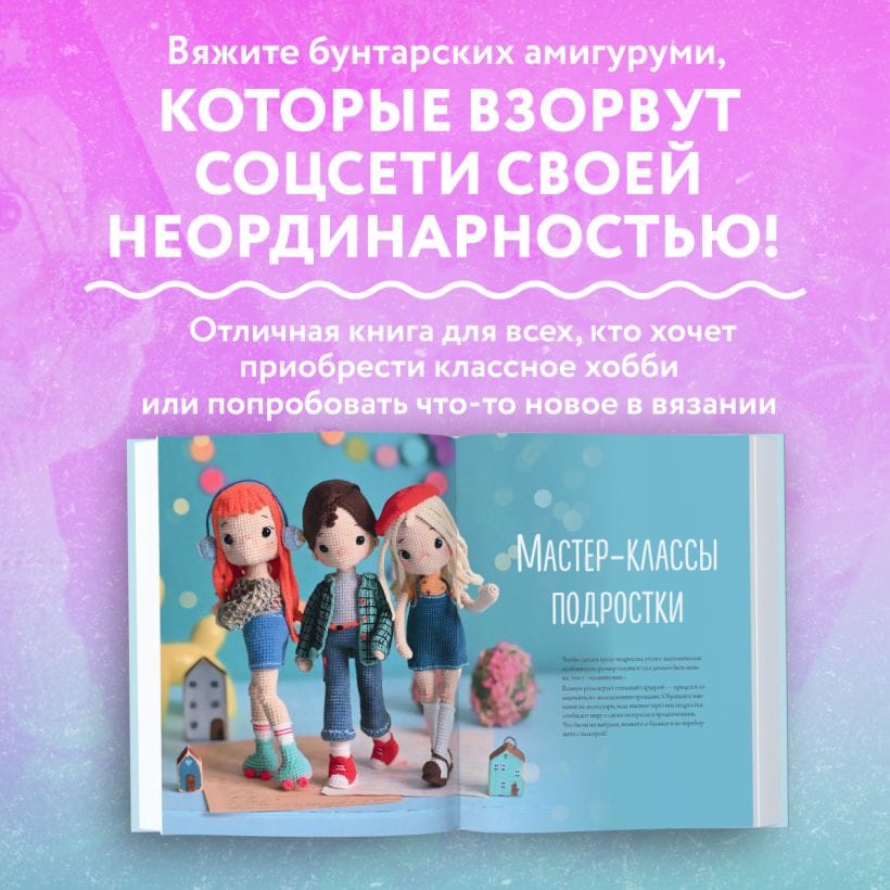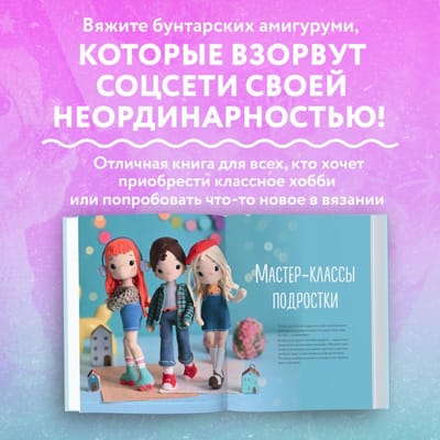 Самое полное практическое руководство по вязанию каркасной куклы-амигуруми крючком от автора бестселлера «Киногуруми в стиле Уэнсдэй».