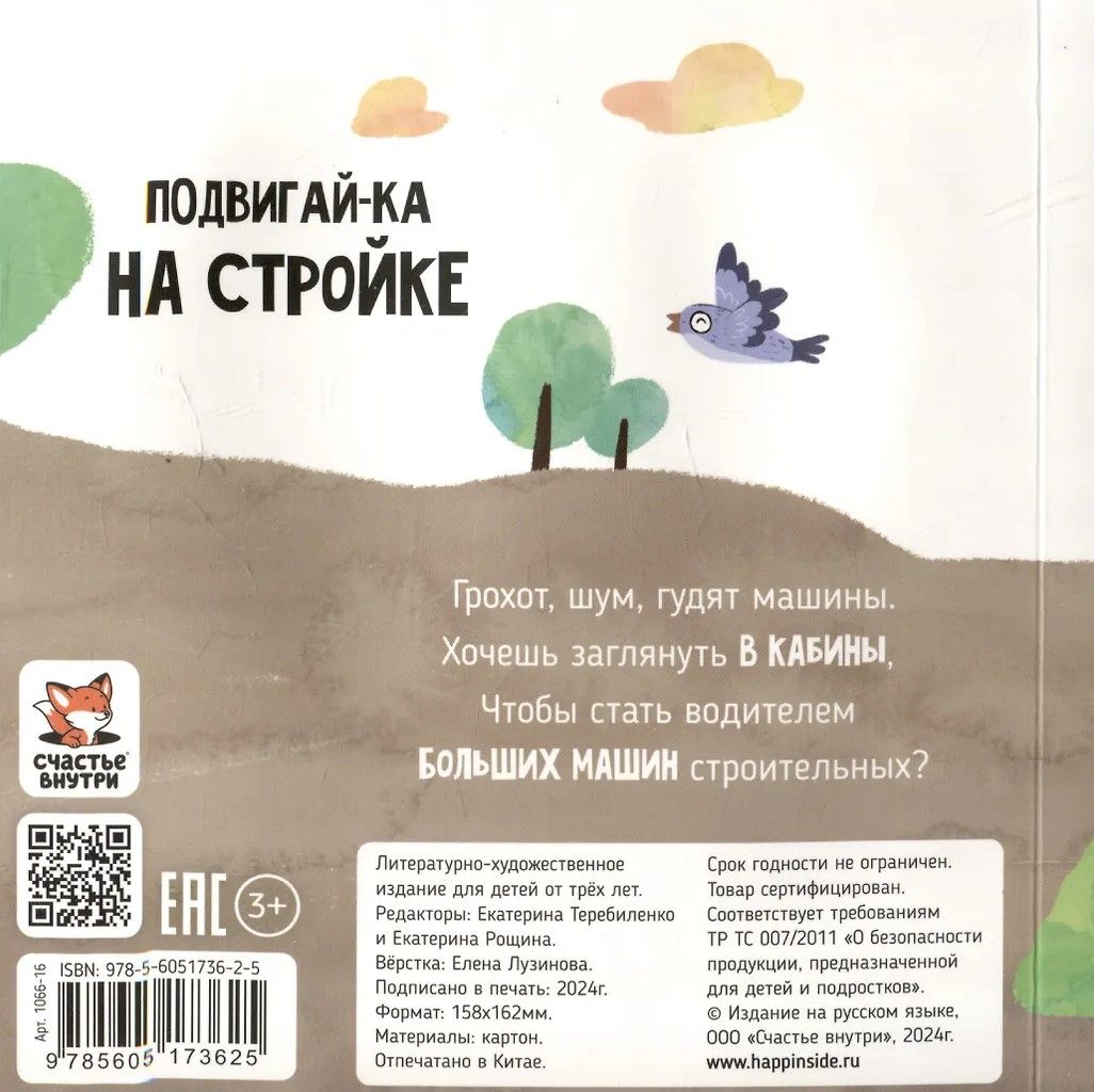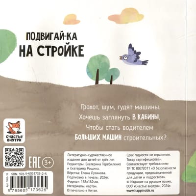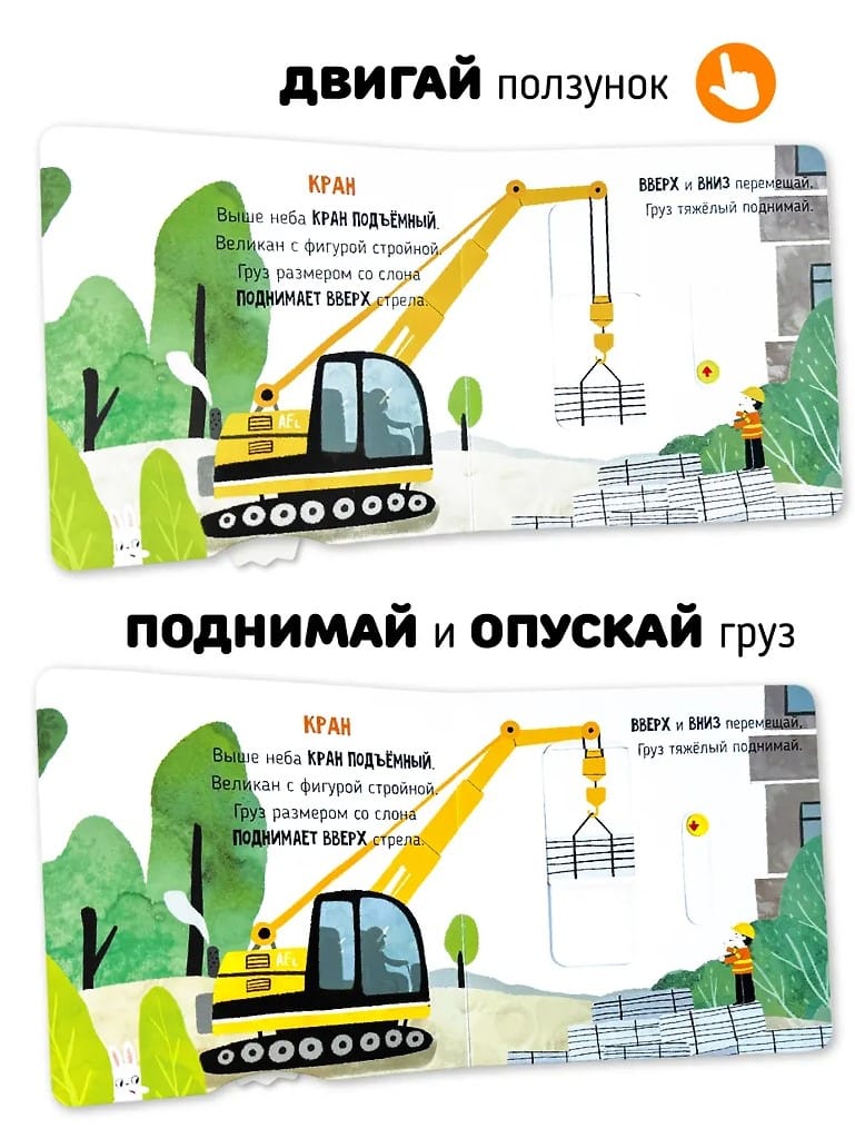 Развивающая книга для самых маленьких «На стройке» из серии «Подвигай-ка» познакомит вашего малыша с миром строительной техники и занимательного обучения. Детская развивашка будет интересна ребенку уже с полугода, а также с 1 года. С большими подвижными элементами, окошками, она станет идеальным спутником для первых шагов в освоении основ окружающего мира. Грохот, шум, гудят машины. Хочешь заглянуть в кабины, чтобы стать водителем больших машин строительных? Книжка-малышка включает 5 крупных интерактивных элементов (каток, кран, самосвал, экскаватор) и простые задания, которые делают процесс чтения увлекательным.