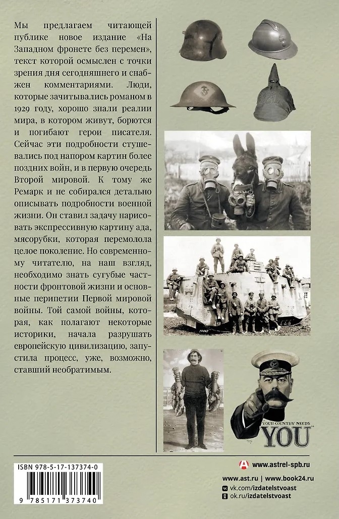 Мы предлагаем читающей публике новое издание романа «На Западном фронте без перемен», текст которого осмыслен с точки зрения дня сегодняшнего и снабжен комментариями. Люди, зачитывавшиеся романом в 1929 году, хорошо знали реалии мира, в котором живут, борются и погибают герои писателя. Сейчас эти подробности стушевались под напором картин более поздних войн, и в первую очередь Второй мировой. К тому же Ремарк и не собирался детально описывать нюансы военной жизни. Он ставил задачу нарисовать экспрессивную картину ада, мясорубки, которая перемолола целое поколение. Но современному читателю, на наш взгляд, необходимо знать сугубые частности фронтовой жизни и — основные перипетии Первой мировой войны. Той самой войны, которая, как полагают некоторые историки, начала разрушать европейскую цивилизацию, запустила процесс, уже, возможно, ставший необратимым.
