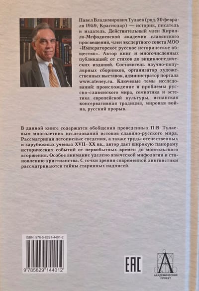 В книге историка, писателя и культуролога П.В. Тулаева содержатся обобщения его многолетних исследований истоков славяно-русского мира. Рассматривая летописные сведения, а также труды отечественных и зарубежных ученых XVI1-ХХ вв.. автор дает широкую панораму исторических событий от первобытных времен до монгольского вторжения. В научно-популярной манере рассказывается о прародинах индоевропейцев, дунайской колыбели славян, древних народах Евразии и варварах — соперниках Римской империи. Интересные выводы содержатся в разделах о венетах, вандалах, балтийской Славии, происхождении Руси и ее имени. Особое внимание уделено языческой мифологии и становлению христианства. С точки зрения современной лингвистики рассматриваются тайны старинных надписей.