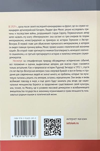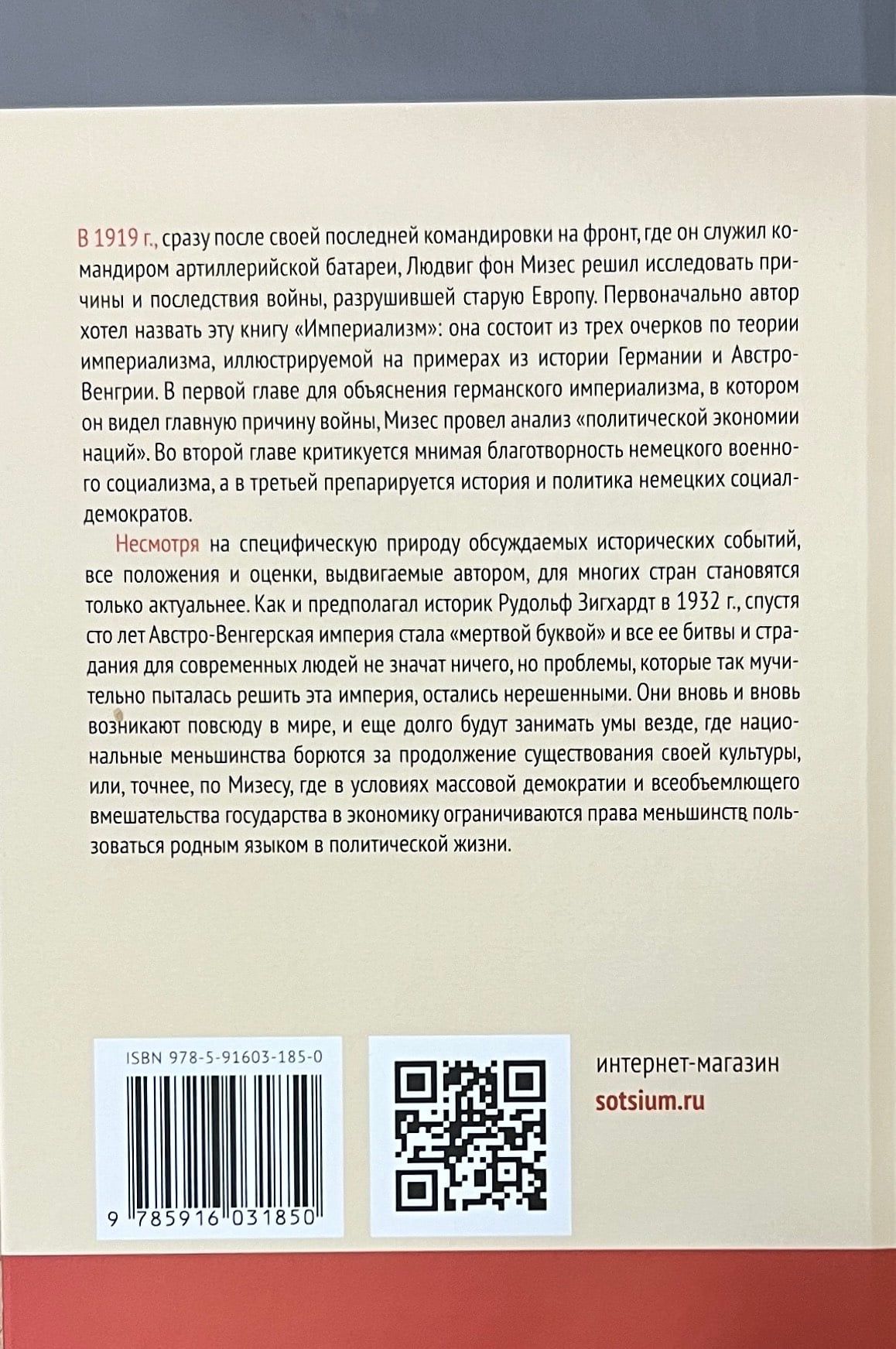 В 1919 г., сразу после своей последней командировки на фронт, где он служил командиром артиллерийской батареи, Людвиг фон Мизес решил исследовать причины и последствия войны, разрушившей старую Европу. Первоначально автор хотел назвать эту книгу «Империализм»: она состоит из трех очерков по теории империализма, иллюстрируемой на примерах из истории Германии и Австро-Венгрии. В первой главе для объяснения германского империализма, в котором он видел главную причину войны, Мизес провел анализ «политической экономии наций». Во второй главе критикуется мнимая благотворность немецкого военного социализма, а в третьей препарируется история и политика немецких социал-демократов.