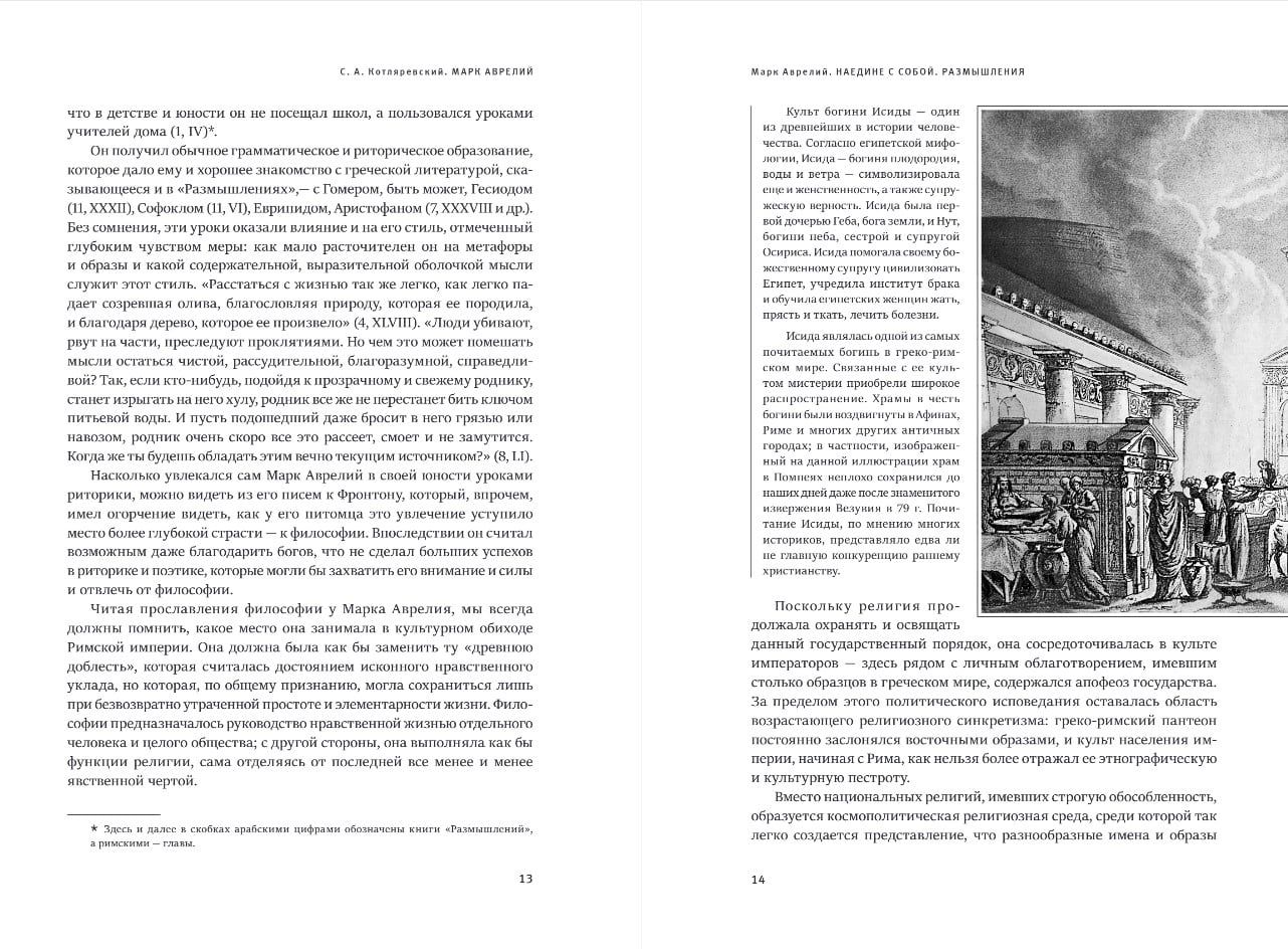 Тем не менее его правление пришлось на медленный закат Римской империи, входившей в полосу культурного и хозяйственного кризиса, и это предчувствие конца читается в дневниковых записях зрелого императора, известных под разными названиями: «Наедине с собой», «Рассуждения о самом себе», «Послания к самому себе». Все они, впрочем, отражают главную особенность этого сочинения — его дневниковость, обращенность внутрь себя, рефлексию. «Размышления» Марка Аврелия стали квинтэссенцией его философских взглядов в русле позднего стоицизма: «Ни с кем не случается ничего такого, чего он не в силах был бы вынести».