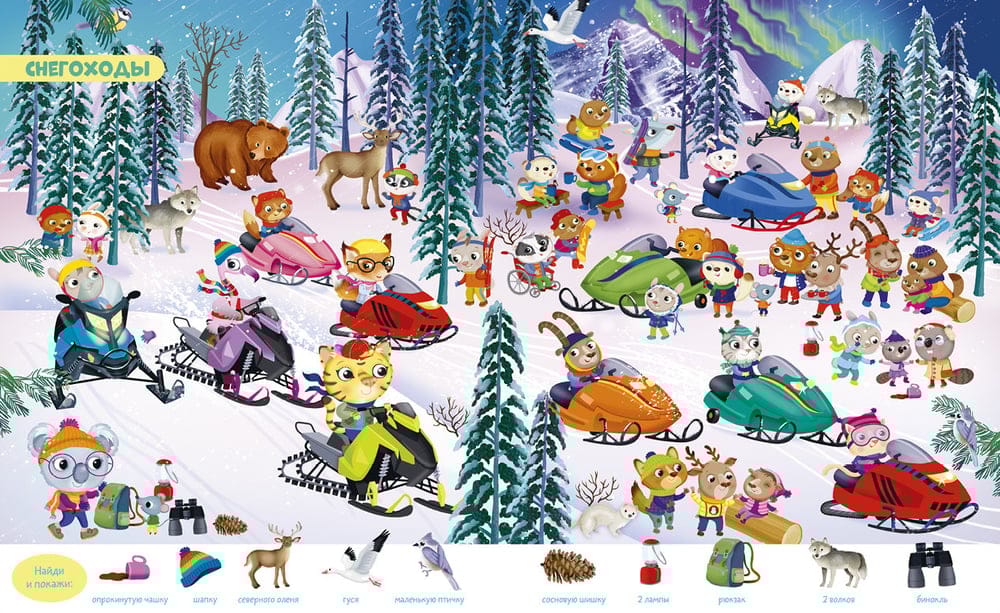 Вы поднимитесь высоко в небо, погрузитесь в морские глубины, побываете в жаркой пустыне и на заснеженных просторах. А по дороге играйте в «Найди и покажи», рассматривайте и раскрашивайте картинки, развлекайтесь с наклейками.