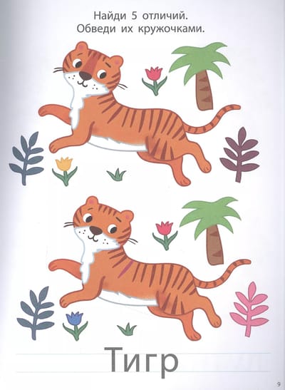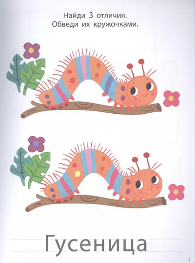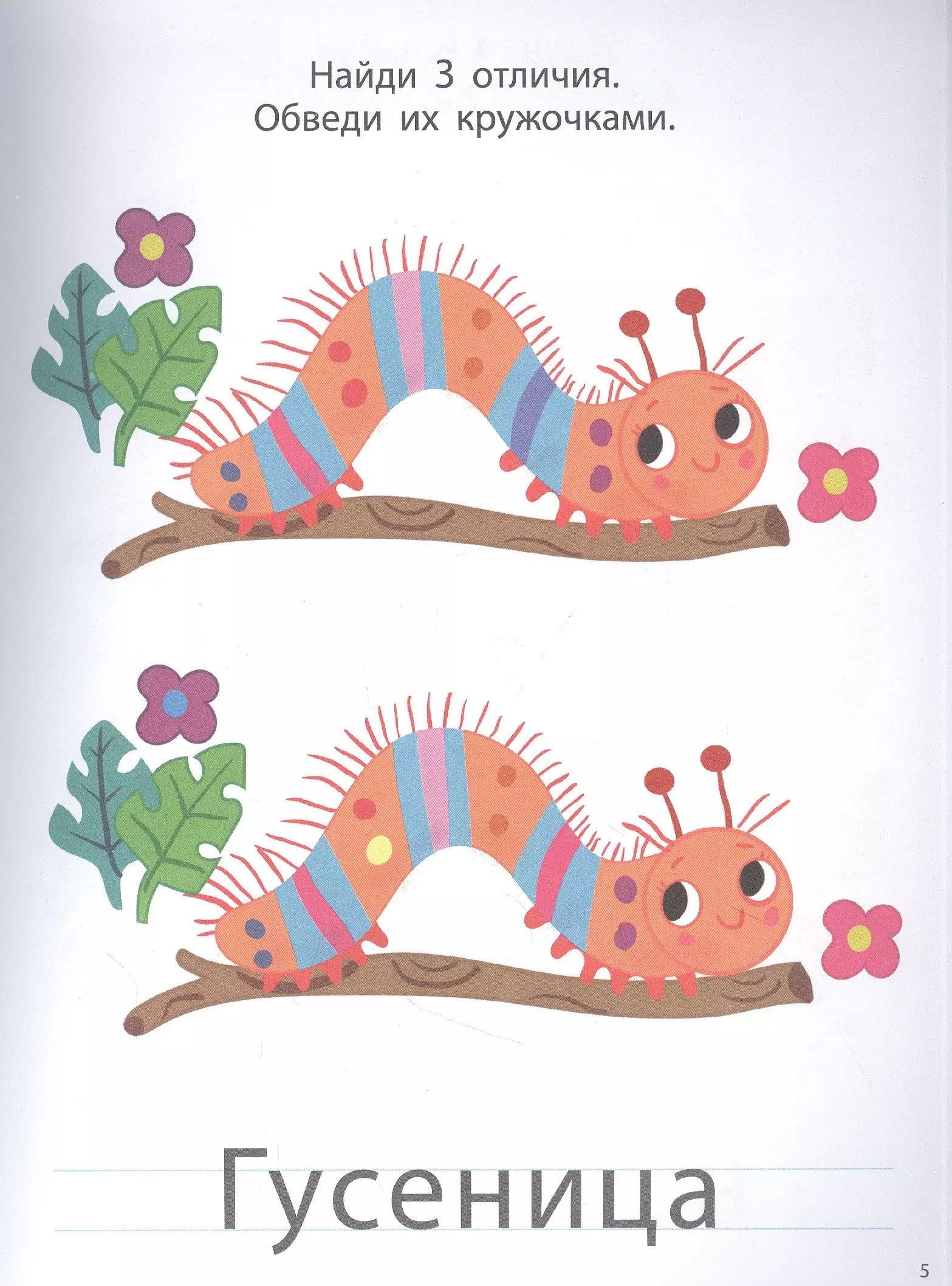 Эта яркая книга специально создана для самых маленьких любителей искать отличия между картинками. В ней собрано много увлекательных заданий для малышей с 2х лет, в которых нужно найти и посчитать отличия между изображениями. Разгадай все отличия, найди и покажи животных, названия которых есть в книге! Начинай обязательно с первого задания, ведь они становятся всё сложнее и сложнее с каждой страницей – от 3 отличий между картинками до 20. Важно знать родителям: Занятия по книге способствуют развитию внимания, логики, усидчивости, мелкой моторики, речи, памяти, пространственного мышления, зрительного восприятия, тренировке навыков письма, способствуют развитию словарного запаса. Рекомендовано для детей от 2 лет.