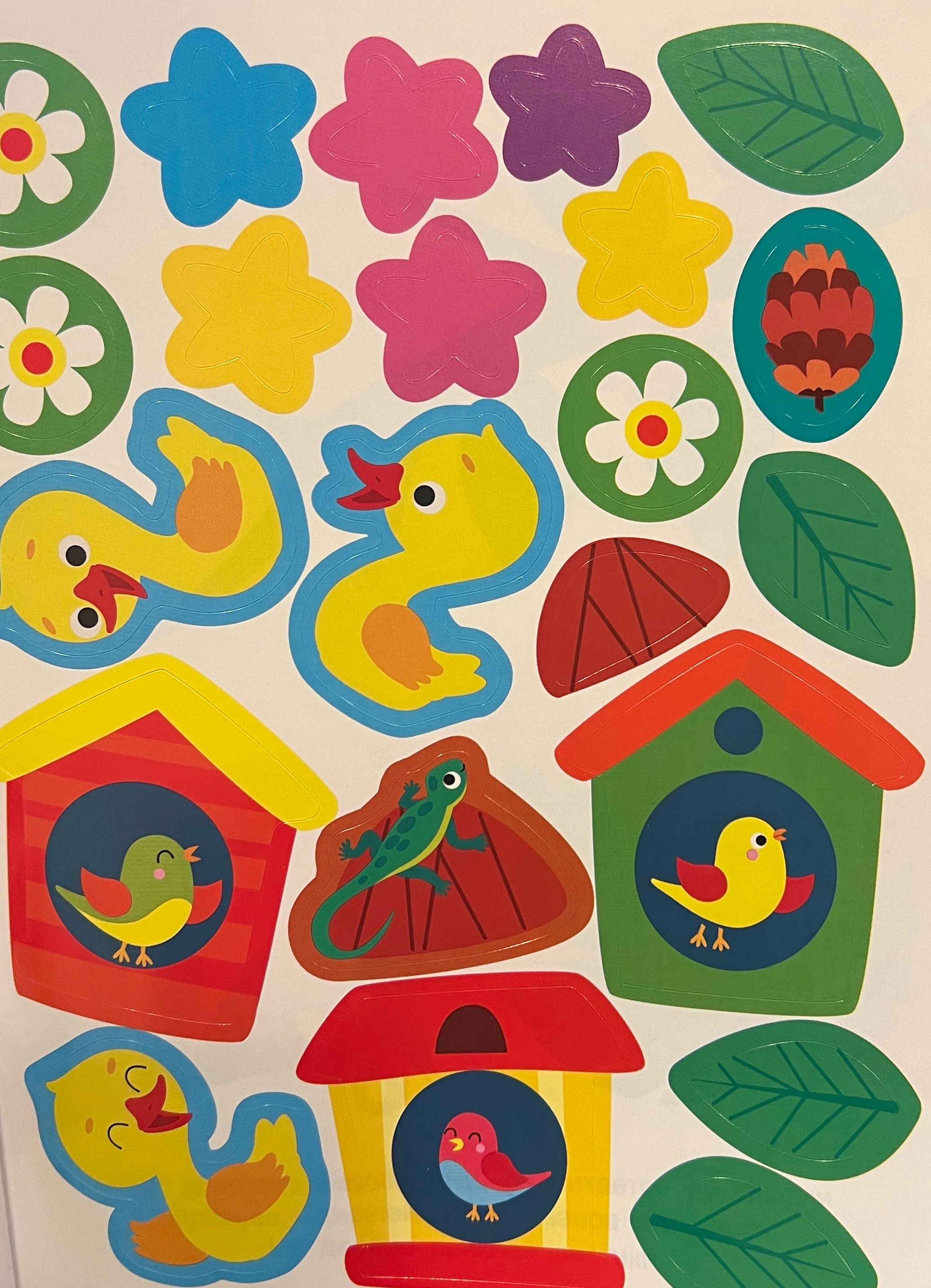 Зверюшки, птички и насекомые, машинки, фрукты и овощи, предметы быта — приклеивайте яркие картинки на странички, тренируйте мелкую моторику рук, развивайте логику, воображени