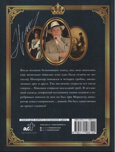 Когда подняли безымянную плиту, под нею оказались еще несколько тяжелых плит (две были отлиты из металла). Император покоился в четырех гробах, заключенных друг в друга. Так англичане стерегли его после смерти… Наконец открыли последний гроб. В истлевшей одежде, покрытый истлевшим синим плащом с серебряным шитьем (в нем он был при Маренго), император лежал совершенно… живой. Он был таинственно не тронут тлением!