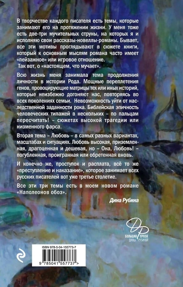 «Наполеонов обоз» Дины Рубиной — это, пожалуй, единственный в наше время настоящий большой роман о Великой любви. Его герои, Аристарх и Надежда, были положены друг другу, обладали редким талантом любви, выпадающим на долю не каждому. Выдержать такую любовь могут далеко не все. Жизни их сотрясло, закрутило и подняло на гребень девятого вала. Современным Орфею и Эвридике пришлось вступить в поединок с роком. Им не довелось жить вместе, но смерть соединила их.