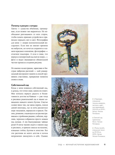 Эта книга раскроет вам тайну, как с помощью простых изобразительных приёмов передать красоту растений в вашем саду, даже если он ютится на небольшом подоконнике, запечатлеть необычные места в путешествиях или очарование парка на соседней улице. Книга знаменитой художницы-иллюстратора, дизайнера и автора ряда бестселлеров Натали Ратковски посвящена техникам ботанических зарисовок. На страницах этого издания вас ждут интересные уроки, где вы узнаете, как рисовать сезонные сады и подбирать цветовую палитру, какие изобразительные техники были выработаны автором и почему в рисунке так важна штриховка. Книга поможет вам отточить навыки быстрого, но точного и красивого рисунка. На счету автора десятки иллюстраций для таких величин, как Vogue, Сosmopolitan, Samsung и Taschen. Сотни станковых картин, рисунков, набросков и зарисовок. Ряд известных художественных проектов. Вместе с Натали Ратковски вы научитесь её художественным техникам и создадите с помощью различных инструментов собственный ботанический сад!