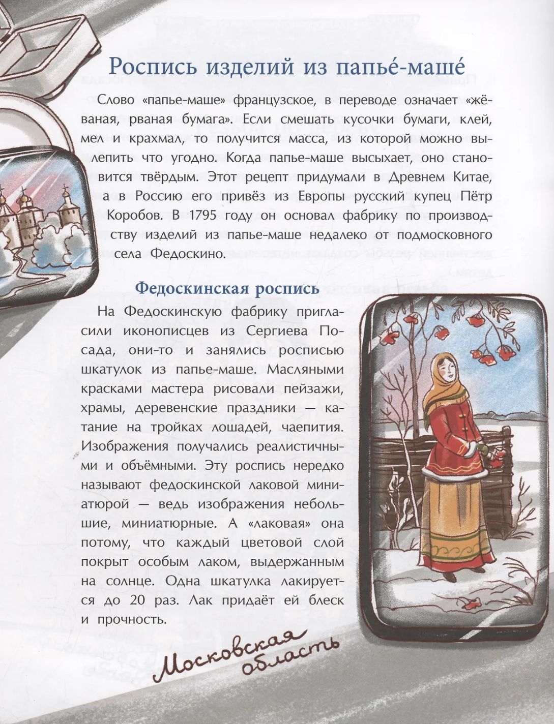 В России несколько сотен народных художественных промыслов — ярких, искусных! Как и где они появились? Какие секреты передают мастера из поколения в поколение? Полюбуйтесь на синеву гжели, золотой узор хохломы, снежную белизну вологодского кружева. Каждая из этих вещей хранит тепло человеческих рук и традиции, уходящие вглубь веков.