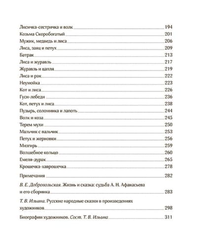 Издание дополнено статьей специалиста-фольклориста В. Е. Добровольской о судьбе А. Н. Афанасьева и его сборника, содержащей подробный и увлекательный рассказ об основных сказочных сюжетах, их источниках и особенностях, статьей специалиста-искусствоведа Т. В. Ильиной об образах русских сказок в произведениях художников В. М. Васнецова, Е. Д. Поленовой, Е. М. Бём, Н. К. Рериха, И. Я. Билибина, о сказочной теме в театре, начало которой было положено знаменитыми «Русскими сезонами» в Париже С. П. Дягилева, о выдающихся иллюстраторах детской книги в советское время — Ю. А. Васнецове, Е. И. Чарушине, Е. М. Рачёве, В. М. Конашевиче, Т. А. Мавриной. В книгу также вошли примечания к сказкам А. Н. Афанасьева и биографии художников.
