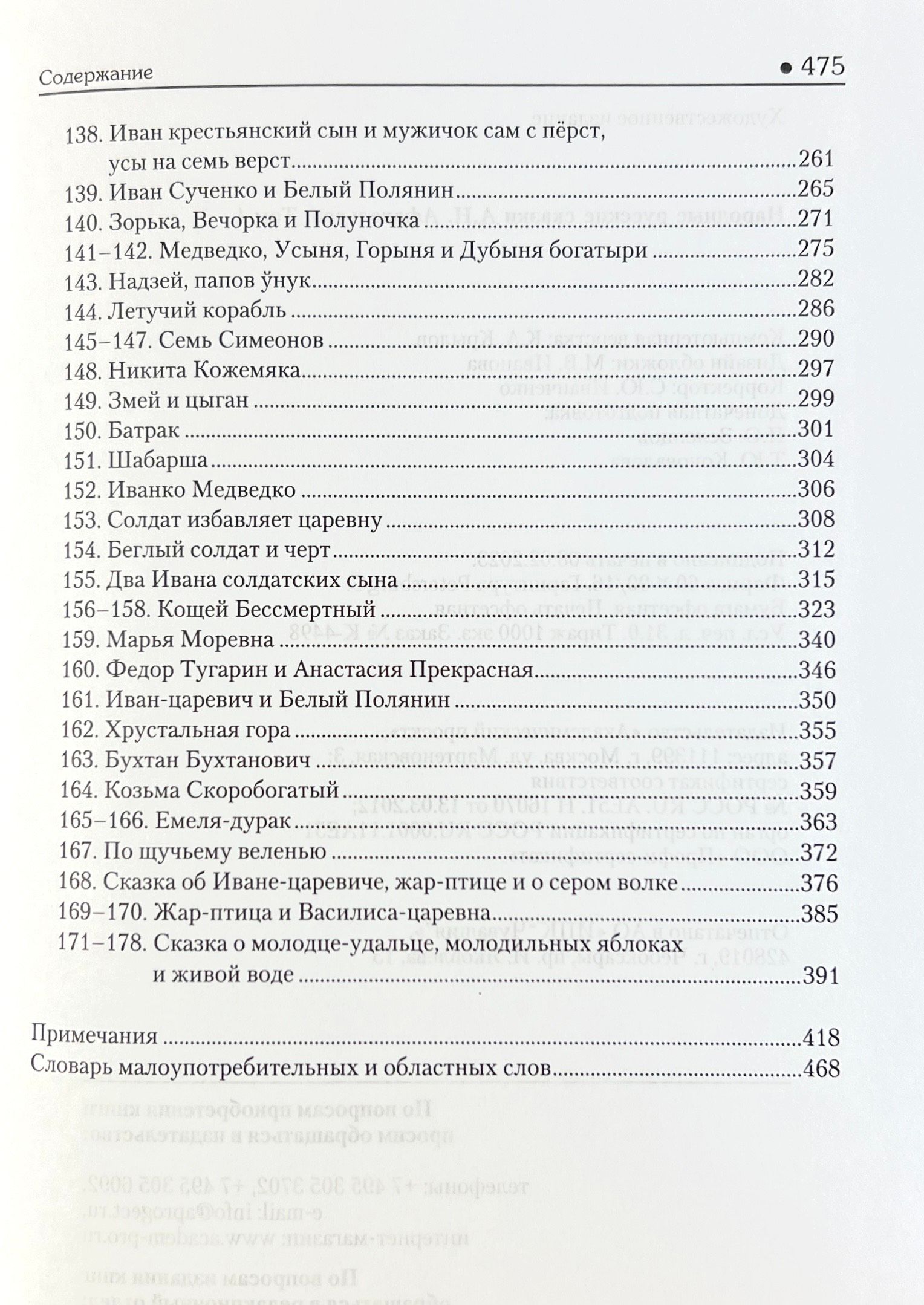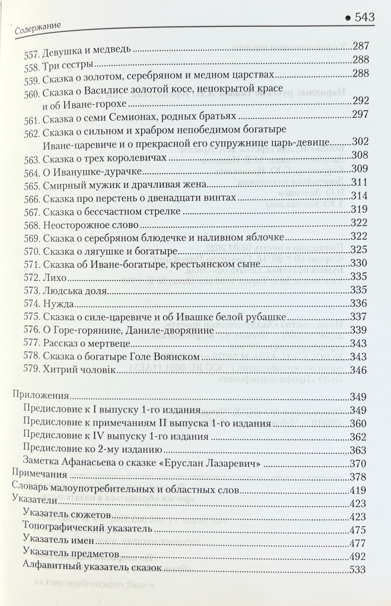 Особая заслуга принадлежит Афанасьеву как составителю сборника народных русских сказок. Афанасьевский сборник (8 выпусков, 1855–1863) — выдающеесяиздание не только отечественной, но и мировой фольклористики. Явившись первым и пока единственным сводом русских сказок, в котором они представлены наряду с украинскими и белорусскими, сборник положил начало научному собиранию и изучению восточнославянской сказки и стал поистине народной книгой, сыгравшей исключительную роль в воспитании не одного поколения читателей. Сказки из этого сборника переведены на многие языки и пользуются мировой известностью. Этот сборник чаще всего называют «Сборник сказок Афанасьева». Для филологов, фольклористов, культурологов и всех интересующихся судьбами русского слова.