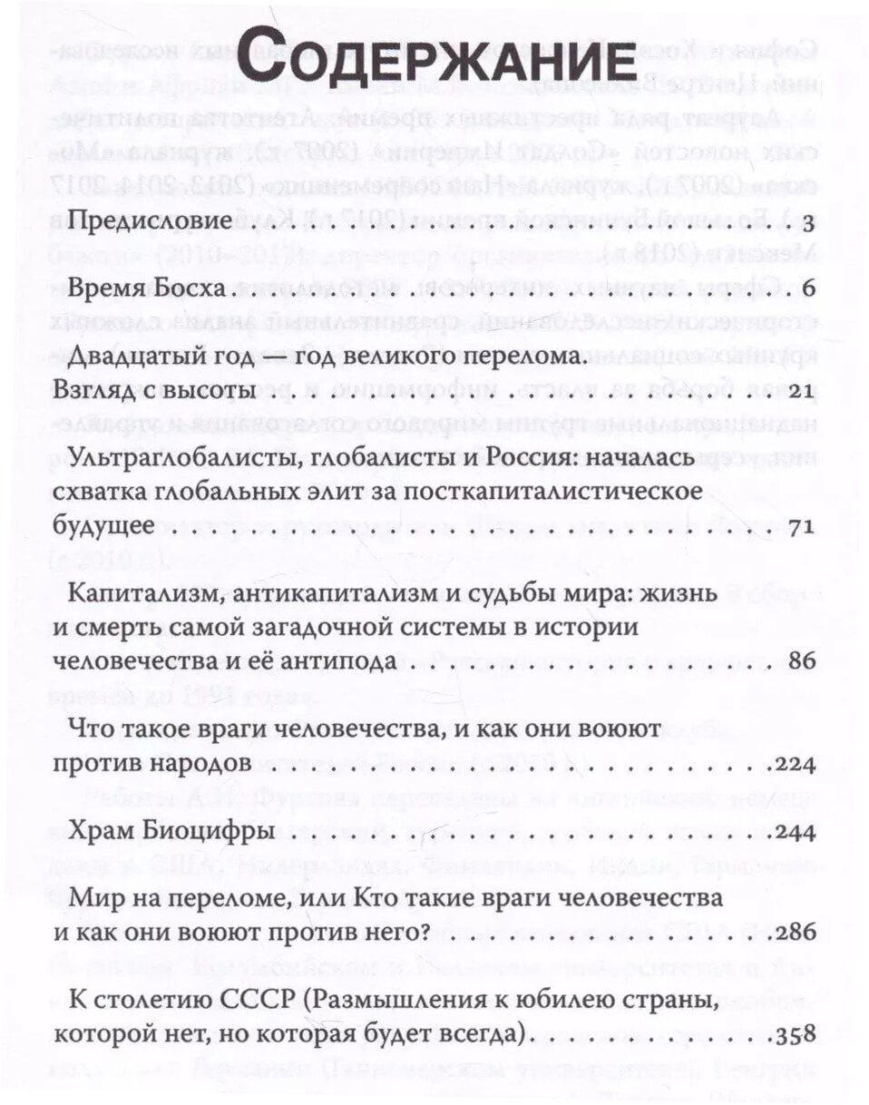 Сборник статей и интервью историка, обществоведа и публициста А.И. Фурсова посвящён нынешней сложной ситуации в мире. Тенденции мирового развития, важнейшие события последних лет, влияющие на действия ключевых политических и экономических игроков сегодня, борьба различных исторических сил за будущее России и других стран, инклюзивный капитализм, планы ультраглобалистов - вот лишь некоторые вопросы, над которыми размышляет автор. Кроме того, читатель сможет познакомиться с перспективными оценками учёного, основанными на анализе прошедших и текущих событий, и найти ответ на вопрос о том, каким образом время Босха (XV–XVI вв.) связано с современностью.