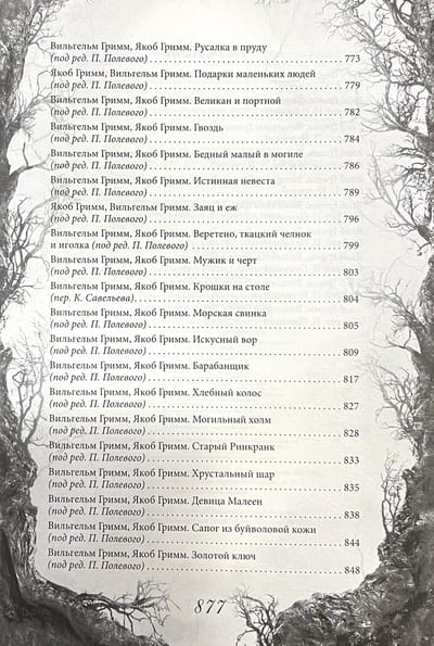 Многие известные сказки в оригинале заканчиваются вовсе не счастливо. На самом деле Братья Гримм писали свои произведения для взрослых, поэтому сюжеты неадаптированных версий «Золушки», «Белоснежки» и многих других детских сказок легко могли бы лечь в основу сценария современного фильма ужасов. Сестры Золушки обрезают себе часть ступни, чтобы влезть в хрустальную туфельку, принц из сказки про Рапунцель выкалывает себе ветками глаза, а «добрые» родители Гензеля и Гретель отрубают своим детям руки и ноги. Таких сказок вам еще не доводилось читать... В этом издании впервые публикуются все, включая самые мрачные и пугающие истории оригинального сборника Братьев Гримм: 200 сказок и 10 легенд. Подарочное издание большого формата дополнено классическими гравюрами Ф. Грот-Иоганна и Р. Лейнвебера. Уникальный переплет со шнурком, закрашенный обрез, плотная тонированная бумага.