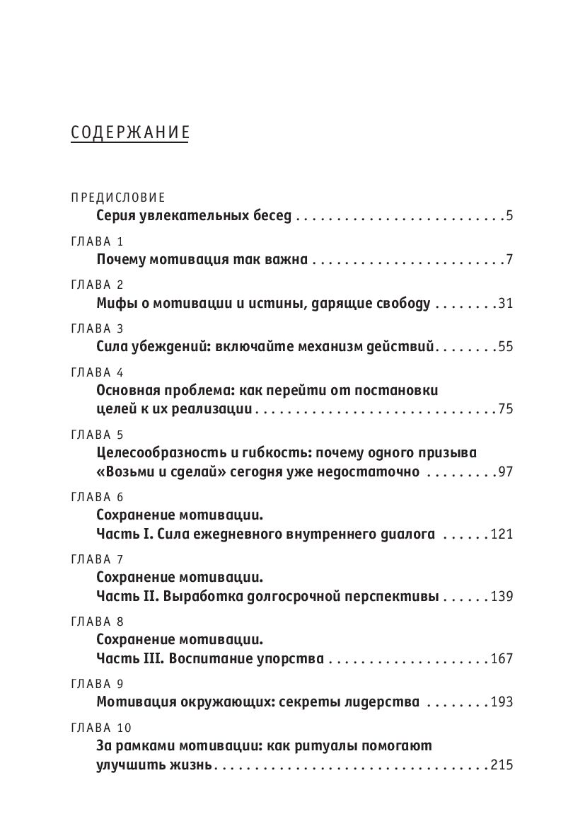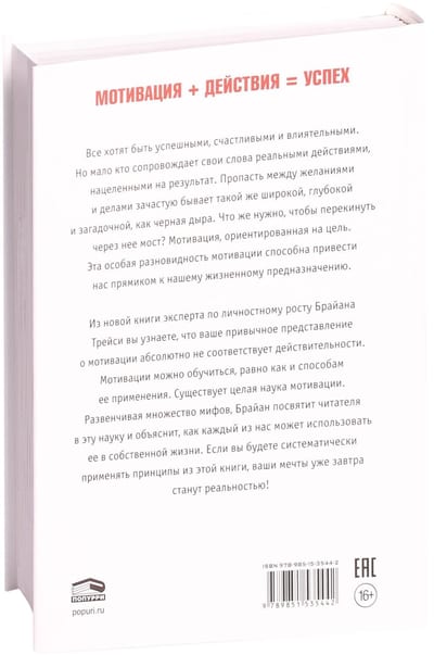 Все хотят быть успешными, счастливыми и влиятельными. Но мало кто сопровождает свои слова реальными действиями, нацеленными на результат. Пропасть между желаниями и делами зачастую бывает слишком глубока. Что же нужно, чтобы перекинуть через нее мост? Мотивация, ориентированная на цель! Из новой книги эксперта по личностному росту Брайана Трейси вы узнаете, что ваши привычные представления абсолютно не соответствуют действительности и что существует целая наука мотивации. Развенчивая множество мифов, авторы посвятят читателя в эту науку и объяснят, как каждый из нас может использовать ее в собственной жизни. Если вы будете систематически применять принципы из этой книги, ваши мечты уже завтра станут реальностью!
