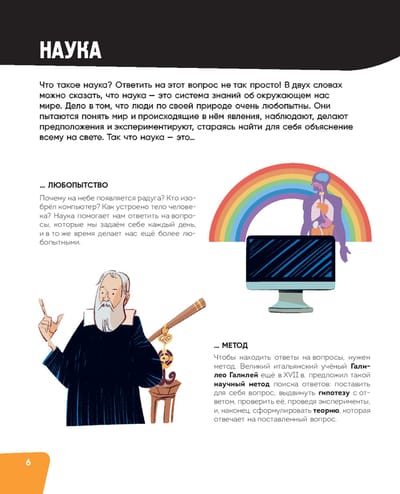 Большая яркая энциклопедия — прекрасный помощник для школьника в изучении точных наук, таких как математика, физика, химия, биология и многих других. Ребёнок узнает, какие древние изобретения наших предков мы используем до сих пор, каким образом химические элементы получают свои названия, как связаны человеческая анатомия и изобразительное искусство и что научный прогресс уготовил нам в ближайшем будущем. Юный читатель найдёт ответы на все вопросы и станет настоящим учёным.