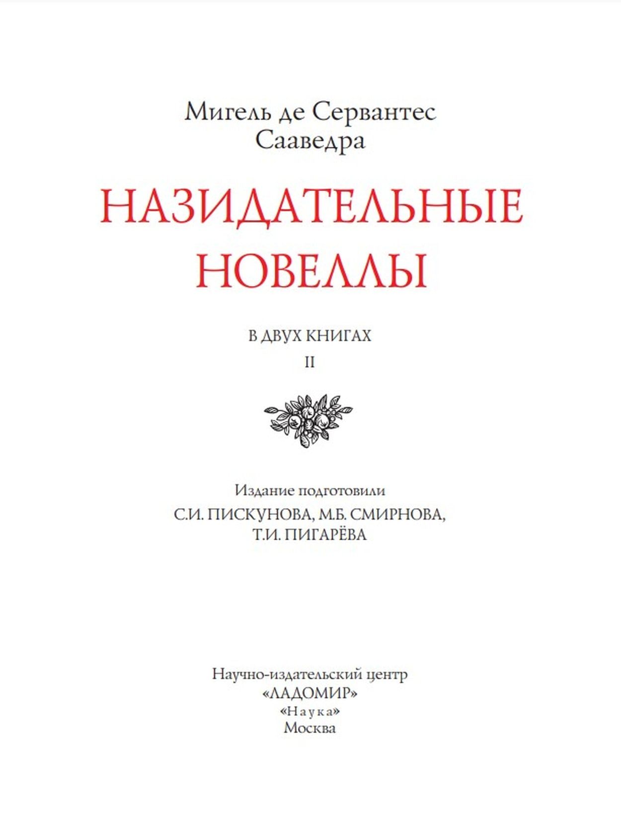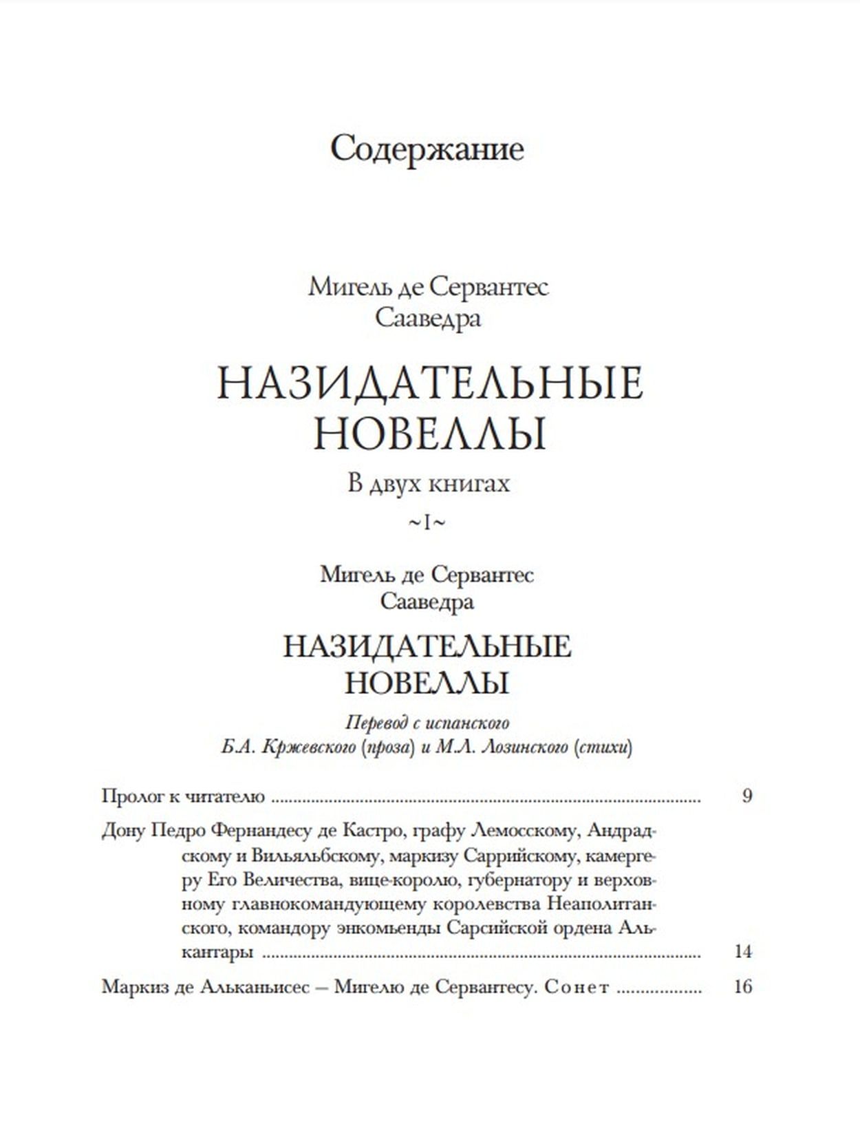 «Назидательные новеллы» являются уже третьей книгой (после «Дон Кихота» и «Комедий и интермедий») Мигеля де Сервантеса Сааведры, изданной в серии «Литературные памятники». И это неслучайно, ведь тенью «Дон Кихота», величайшего романа в истории мировой литературы, оказались незаслуженно заслонены другие прекрасные произведения выдающегося испанца. Свод из двенадцати назидательных новелл, увидевший свет в 1613 году, в пору, когда работа над похождениями хитроумного идальго близилась к завершению, вызвал у современников бурный восторг: в их глазах эти мини-романы превосходили хитроумием Критский лабиринт — творение достославного Дедала, а сюжетными поворотами могли сравняться подчас с «вымыслами носатого поэта» Овидия.