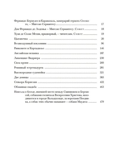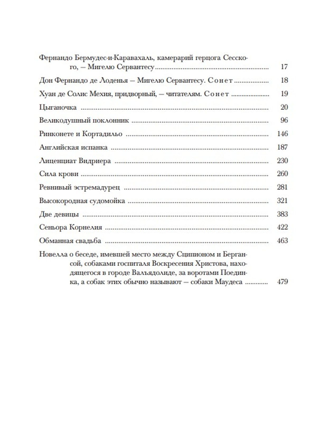 Вместе с табором цыган читатель отправляется в странствия по бескрайним просторам великолепной Андалусии, в кампании с английскими пиратами ввязывается в кровавые морские переделки, открывает для себя диковинное братство воров, живущее подобно рыцарскому ордену — по законам чести и достоинства, оказывается свидетелем омерзительных бесчинств берберийских пиратов, знакомится с чудаковатым саламанкским студентом, возомнившим себя скроенным из стекла и оттого осенённым мудростью, ибо в стекле «душа трудится быстрее и лучше, нежели в теле, землистом и грузном». В венчающей книгу «Новелле о беседе собак» автор обращается к необычной для него животной фантастике в духе Апулея и Лукиана и выводит на сцену пару замечательных представителей пёсьего племени: четвероногие ведут разговор на манер философов-киников. Но было ли всё это на самом деле или лишь пригрезилось поручику, вздремнувшему на койке вальядолидского госпиталя (по замечанию одного из хвостатых мудрецов, «всё пережитое нами и всё, что мы переживаем, есть сон»), остаётся загадкой.