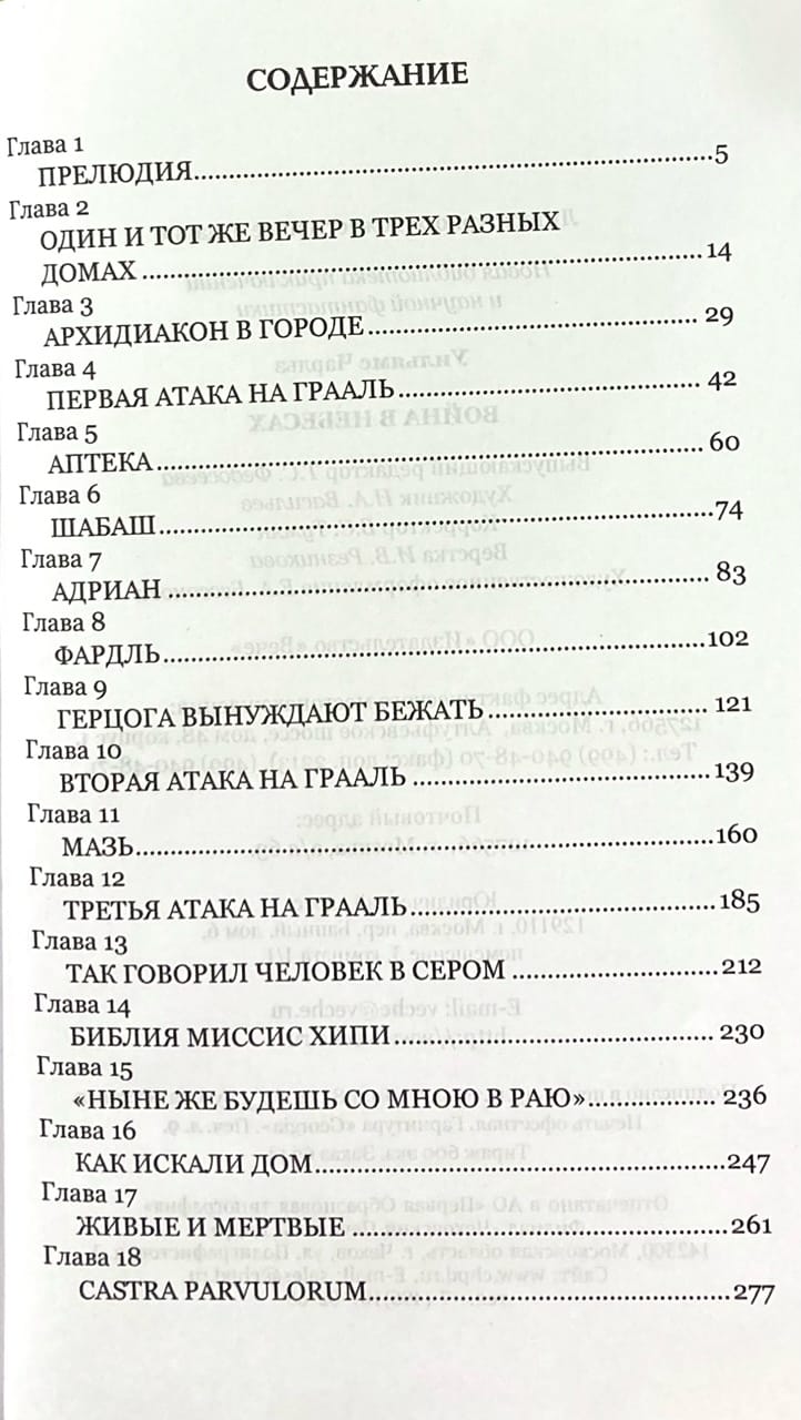 Роман «Война в Небесах» — это почти булгаковская история с детективным сюжетом. Начинается все с того, что в одном из кабинетов лондонского издательства обнаруживают труп неизвестного, а потом… Целая буря страстей взвихрила Лондон и его окрестности. Кто бы мог подумать, что причиной всего окажется невзрачная на вид чаша, долгое время стоявшая в алтаре тихой деревенской церквушки…