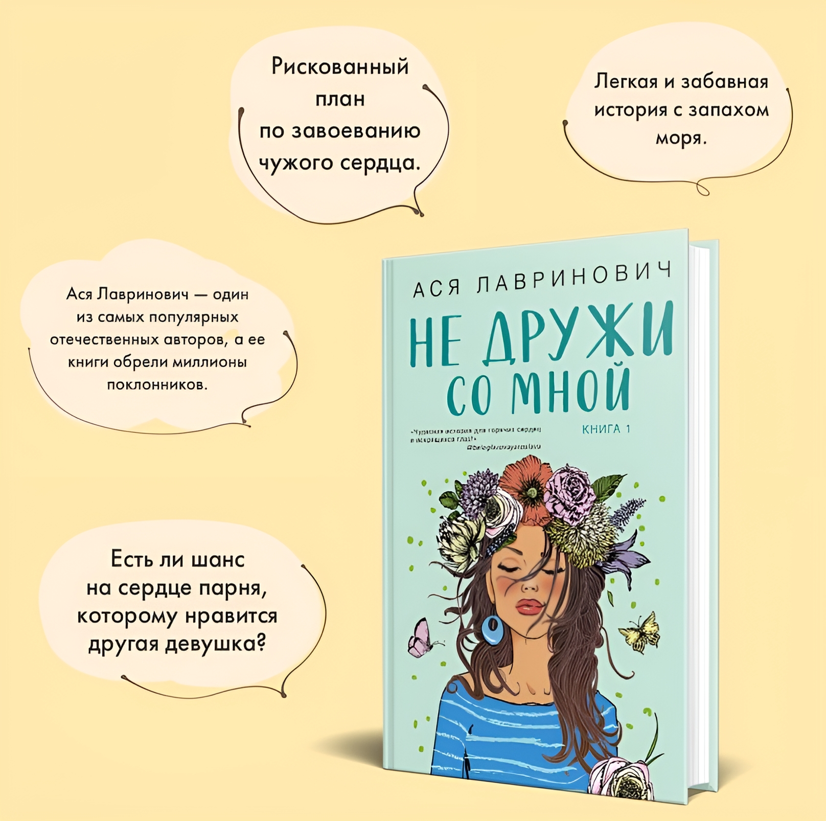 Новинка от Аси Лавринович! «Не дружи со мной» — первая книга дилогии. Романтичная, милая, смешная история, действие которой происходит на море.