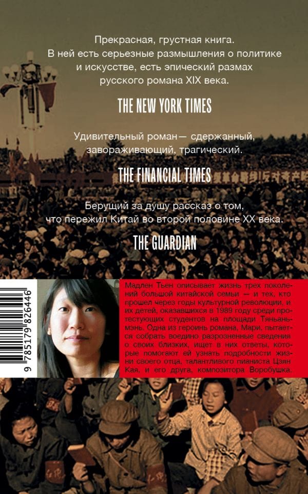 Семья Мари Цзян иммигрировала из Китая в Канаду и осела в Ванкувере. Здесь, после самоубийства отца, Мари вместе с матерью разбирает его бумаги и постепенно погружается в удивительную, жестокую и кровавую историю Китайской Народной Республики, от гражданской войны и культурной революции до событий на площади Тяньаньмэнь. Судьба трех поколений семьи Мари оказывается накрепко связанной с судьбой семьи еще одной эмигрантки – Ай Мин. События настоящего и прошлого наслаиваются друг на друга, а произведение постепенно становится масштабной эпической сагой о жизни людей, брошенных в безжалостные жернова великих перемен, грандиозных свершений и больших надежд.