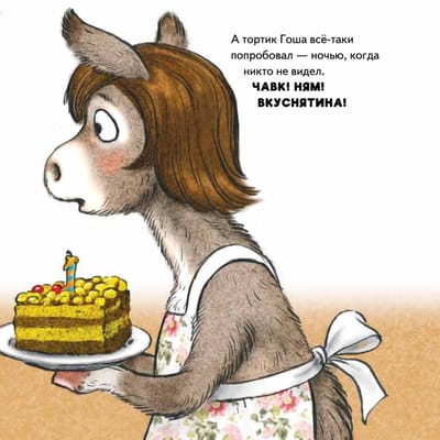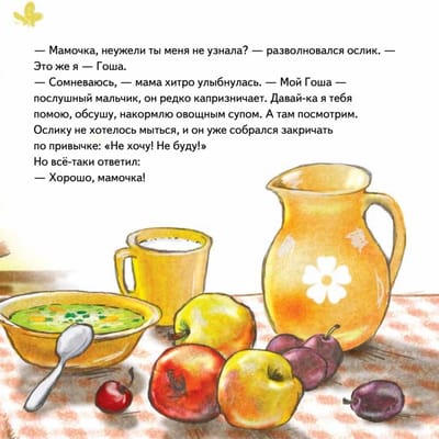 Маленький ослик Гоша – ужасный капризуля. Вместо «спасибо» он говорит: «Не хочу!» Перед прогулкой ворчит: «Не буду!» Ничего не хочет упрямый малыш – ни чистить зубы, ни расчёсываться. Но однажды он не послушал совета друзей и превратился… Хочешь узнать в кого? Усаживайся поудобнее! Пришло время доброй сказки от мамули кошечки. Книги серии «Капризный малыш. Сказки мамы кошки» помогают маленьким читателям легко справиться с непослушанием, упрямством, плохим сном и аппетитом... Мудрая мама кошечка знает все секреты хорошего поведения! Иллюстратор серии – Рина Зенюк – автор знаменитых «Синих Котов», которых любят малыши и их родители по всему миру. Автор предисловия в стихах – Татьяна Коваль.