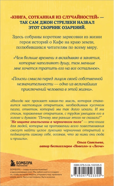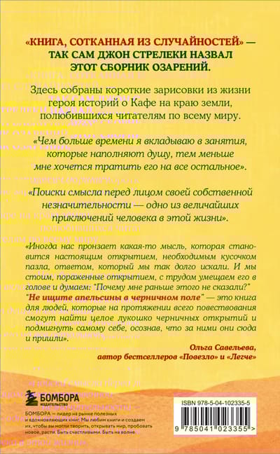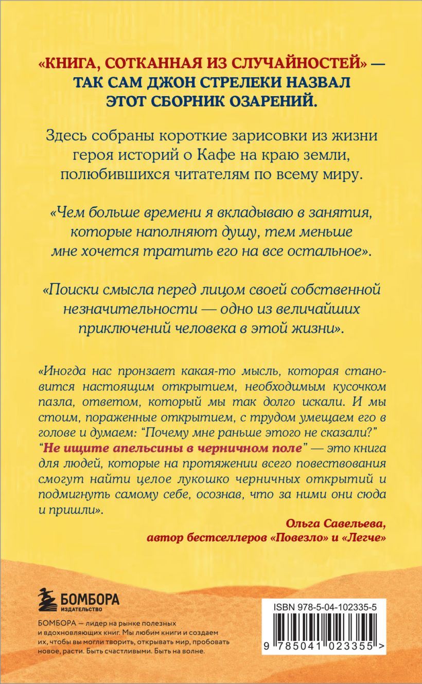 В этой книге он делится своими озарениями, житейской мудростью и наблюдениями, которые помогают посмотреть на привычное под другим углом.«Не ищите апельсины в черничном поле» понравится поклонникам историй о Кафе на краю земли и будет вдохновляющим открытием для тех, кто только начинает знакомиться с творчеством Стрелеки.